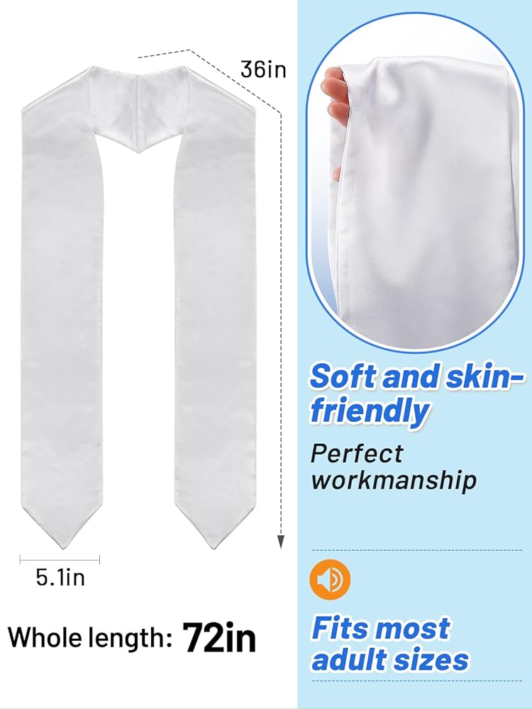 Perfect Size: Designed with a total length of 72 inches and a shoulder width of 5.1 inches, our graduation stole class of 2024 fits most adults comfortably, ensuring an elegant appearance for wearers of all sizes.