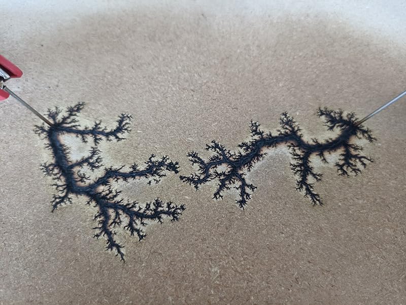 Lichtenberg machine works with softwoods and hardwoods, such as pine, cedar, spruce, oak, maple, and cherry (NOTE: dry woods are recommended for ideal results)