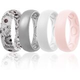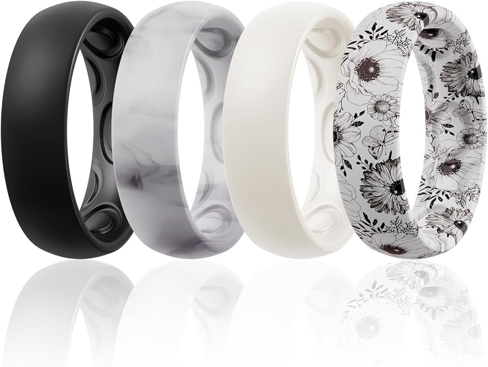 خاتم زفاف من السيليكون للنساء من Egnaro، تصميم مريح وقوس داخلي مريح للتنفس، خاتم زفاف من السيليكون بعرض 4 مم - سمك 1.5 مم من المطاط للنساء - 7 حلقات / 4 حلقات / حلقة واحدة من خواتم الذكرى السنوية