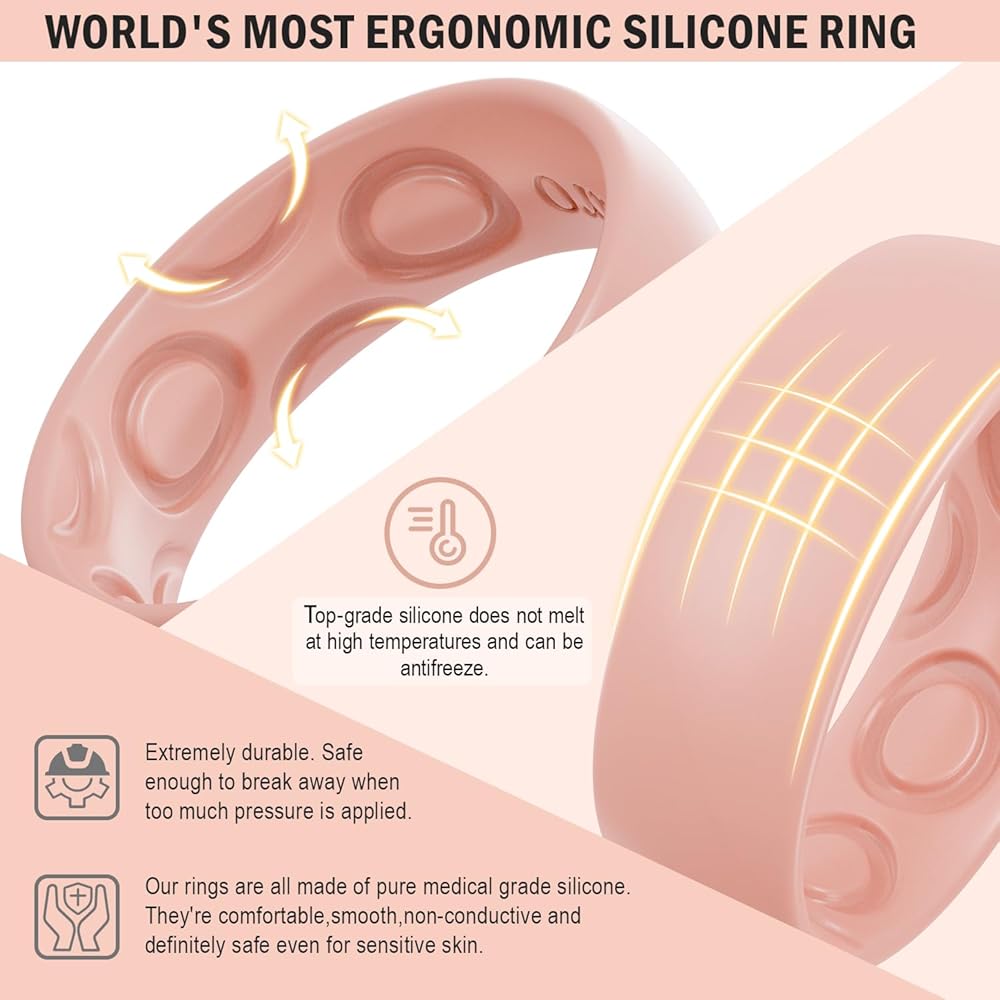 جودة فائقة وتصميم قابل للتنفس: مصنوعة من السيليكون المرن بدرجة طبية ولا يسبب الحساسية وغير موصل، حلقاتنا آمنة حتى على البشرة الحساسة، وسهلة استيعاب الأصابع المتورمة المؤقتة أو المفاصل الكبيرة دون فقدان الشكل، ومثالية للرجال الذين يعملون مع الأدوات أو إلكترونيات. استمتع بالراحة طوال اليوم مع النمط الماسي الداخلي لتدفق الهواء ومنع الرطوبة. لا مزيد من علامات الحلقة.