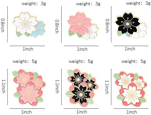 • This cute Sakura pin set containing 6 exquisite enamel brooches is designed with different shapes: Bright colors and vivid drawings make it a great choice for fashion pairings and decorative accessories. Different amount and colors of the flower patterns are available for you to choose, adding charm and elegance to your outlook.