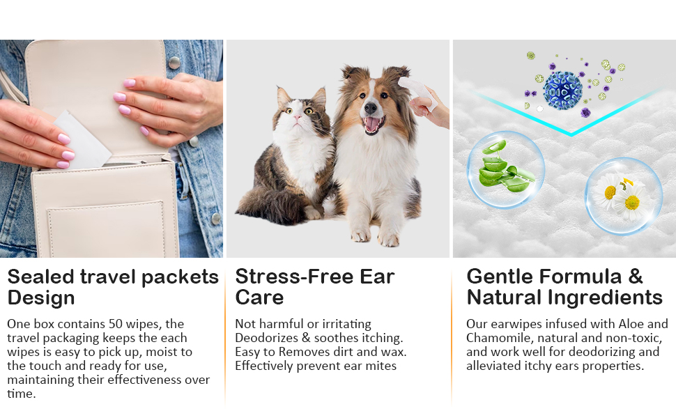 【مناسبة للسفر وسهلة الاستخدام】تعد مناديل أصابع الأذن هذه للكلاب ممتازة للوصول إلى آذان حيوانك الأليف وتنظيف جميع الزوايا والرافعات بدقة. إنها تسمح بتحكم وحساسية أفضل، مما يضمن عدم إزعاج حيوانك الأليف. العبوات الفردية الصغيرة مريحة، ويمكن وضعها بسهولة في حقيبتك أو محفظتك، وجاهزة للاستخدام في أي وقت - مثالية للتنظيف السريع أثناء السفر أو النزهات.