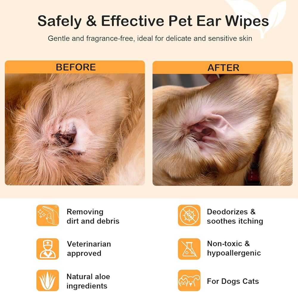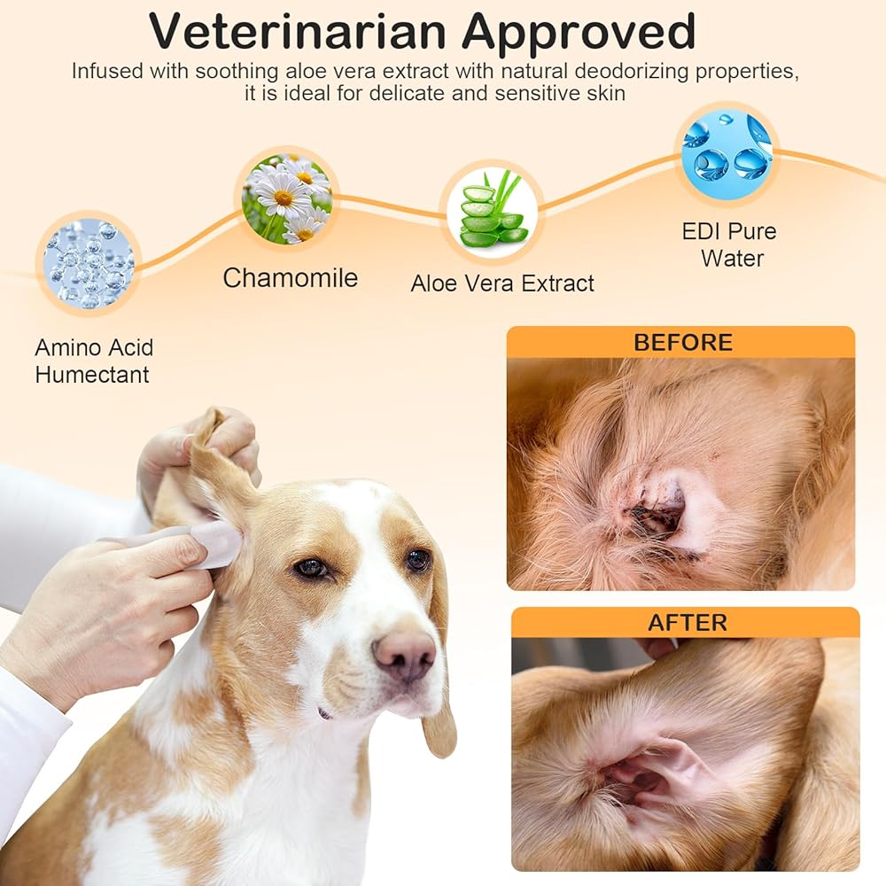 【أطلق العنان لحيوية الأذن】تم تصميم مناديل تنظيف أذن الكلاب هذه خصيصًا بتركيبة متقدمة لتنظيف آذان صديقك المكسو بالفراء وإزالة الروائح الكريهة منها وتجفيفها بلطف، مما يوفر تجربة تنظيف أذن من الدرجة الأولى.
