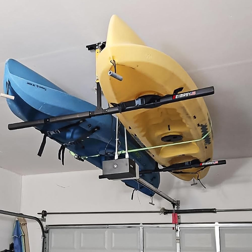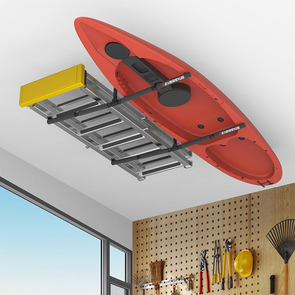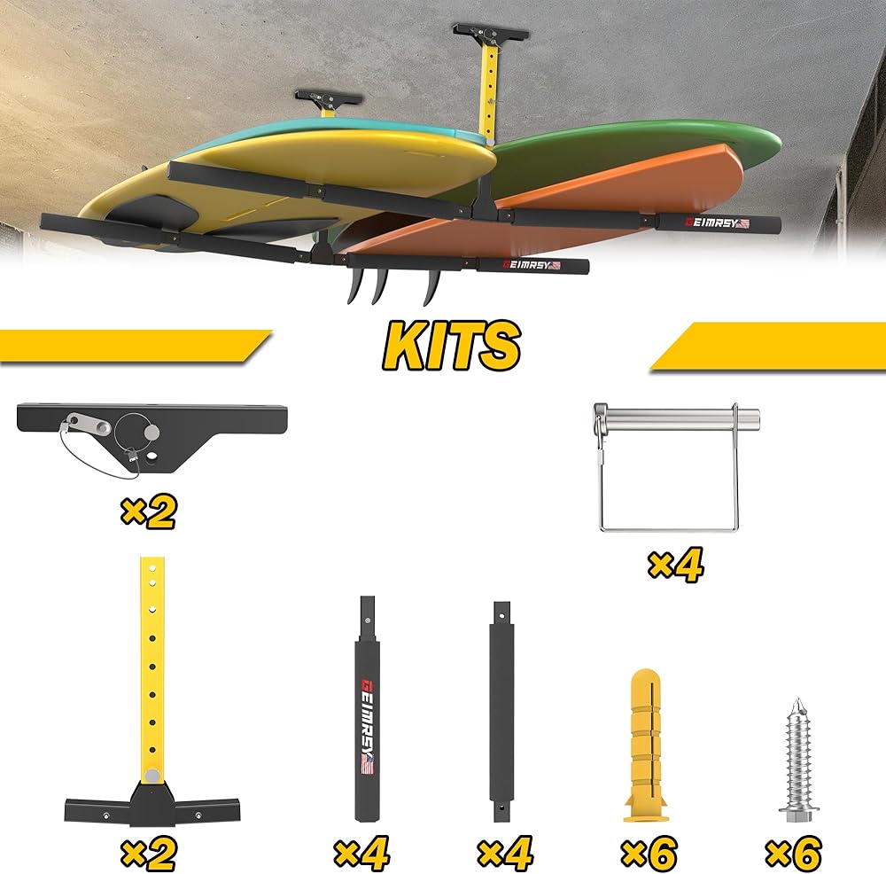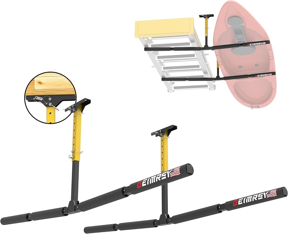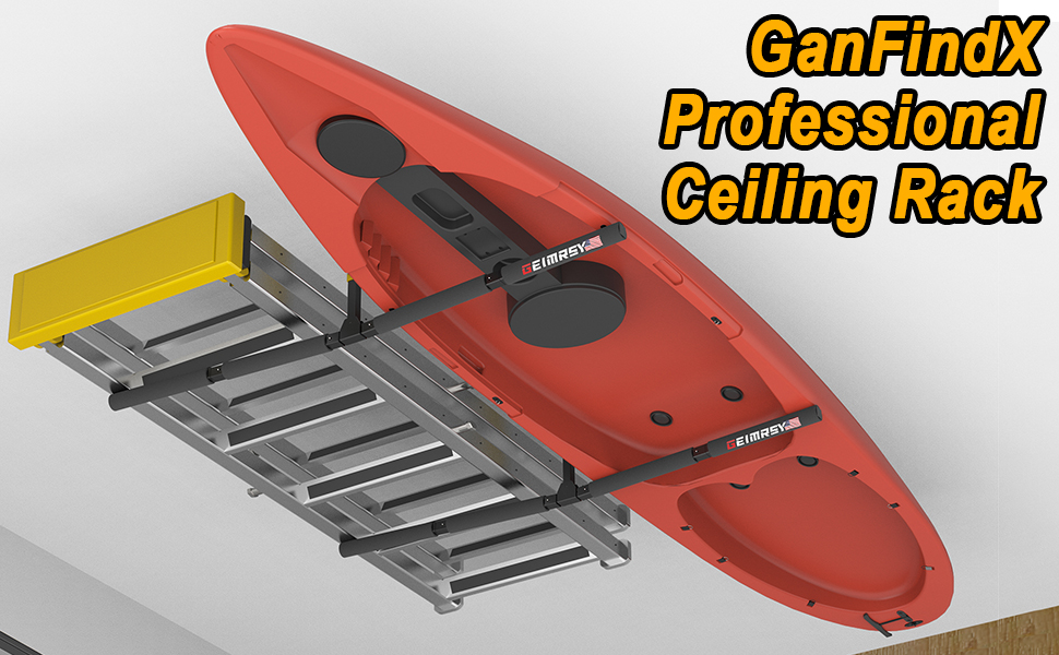 رف تخزين سقف كاياك قابل للتعديل من GanFindX | شديدة التحمل 200 رطل | نظام رف السقف سلم، شماعة جبل المرآب للسلم، لوحة مجداف، SUP، لوح التزلج على الجليد 2 حزمة