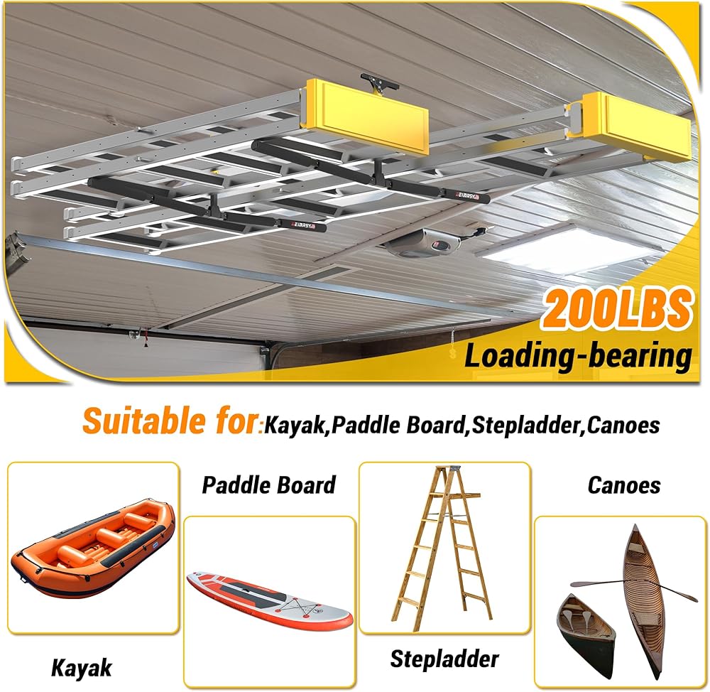 متعددة الاستخدامات: علاقة تخزين السقف مناسبة لتخزين عناصر مختلفة مثل السلالم وقوارب الكاياك وSUP وSKI. ارتفاع الرف القابل للتعديل (12.6-20.8 بوصة) يناسب أحجام وأشكال مختلفة من العناصر.