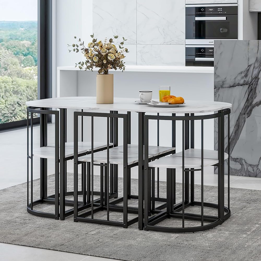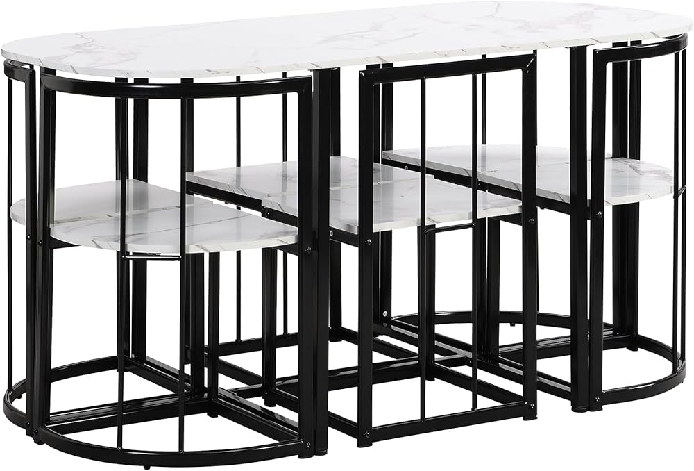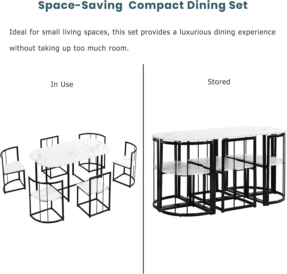 💕💕[Compact Dining Table Set] This dining set offers both functionality and space-saving design, featuring a 55-inch table with six comfortable chairs that can be conveniently tucked under the table when not in use. Ideal for small living spaces, this set provides a luxurious dining experience without taking up too much room.