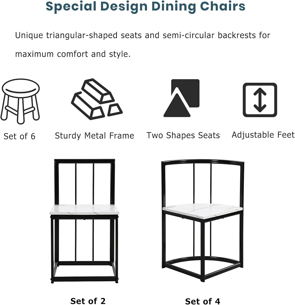 💕💕[Elegant Dining Chairs] Elevate your dining experience with this 7-piece dining set, complete with unique triangular-shaped seats and semi-circular backrests for maximum comfort and style. Each chair features a sleek and modern design, perfectly complementing the contemporary look of the table. The set is perfect for hosting intimate gatherings or family dinners, adding both functionality and elegance to your living space.