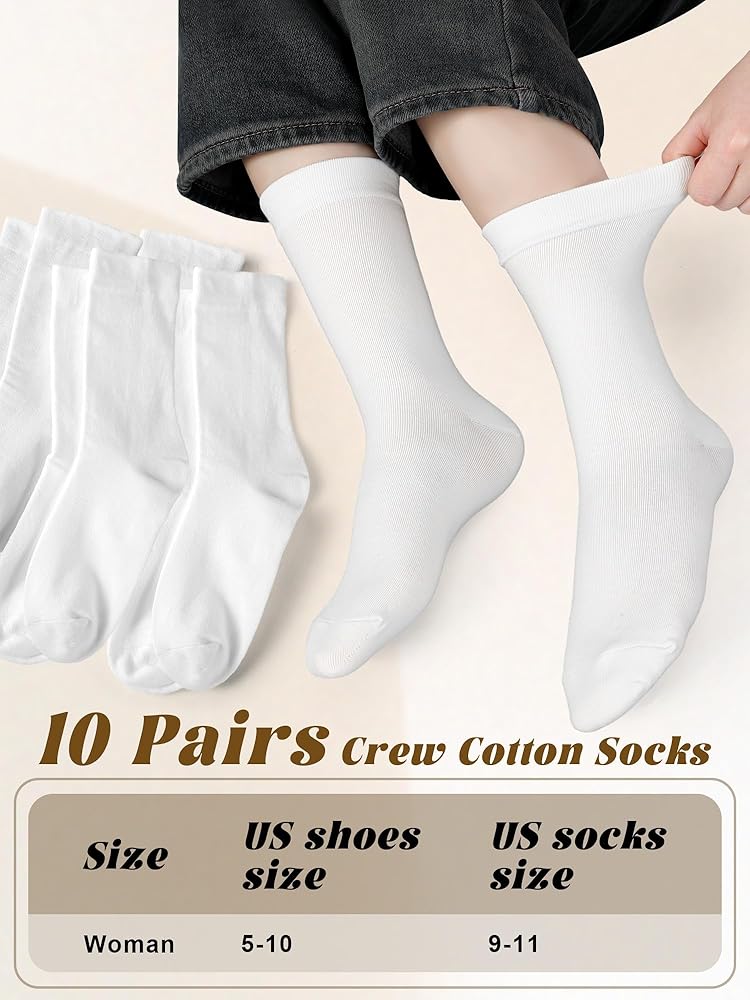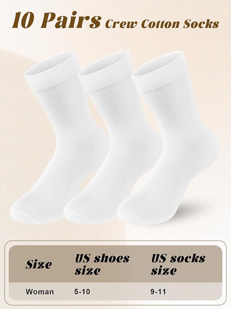 جوارب نسائية قطنية ناعمة: تحتوي العبوة على 10 أزواج من الجوارب النسائية الناعمة لمنتصف الساق، خامة القطن عالية الجودة آمنة، ومناسبة للأشخاص ذوي البشرة الحساسة