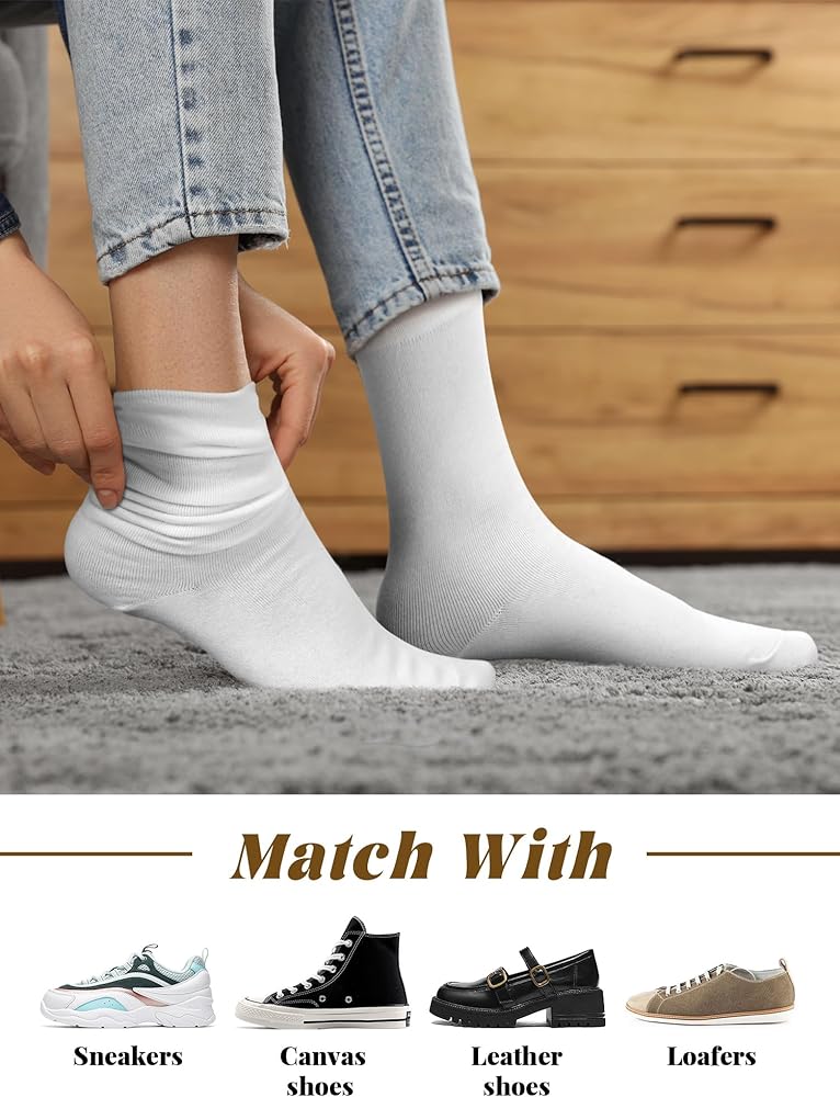 استخدامات متعددة: هذه الجوارب القطنية الدائرية مثالية للأنشطة المختلفة، سواء للاستخدام اليومي أو العمل أو الدراسة أو الاسترخاء في المنزل؛ نسيج قطني مسامي لتوفير أقصى قدر من الراحة واللطف على البشرة الحساسة