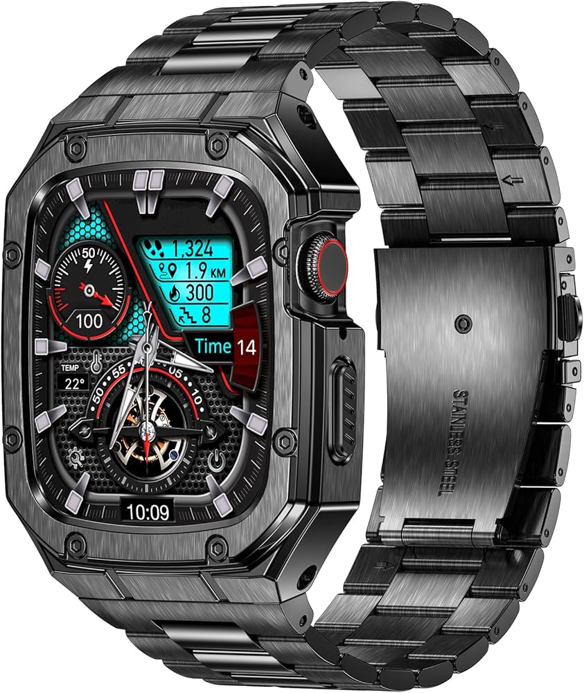 1. 【التوافق: أساور BAITEYOU من الفولاذ المقاوم للصدأ مع علبة من الفولاذ المقاوم للصدأ متوافقة مع سلسلة ساعات Apple SE 6 5 4 SE 3 2 1 (42 مم 44 مم). سوار الساعة مع الجراب مناسب لمقاس المعصم من 6.2 سم إلى 8.8 سم. (الساعة غير متضمنة)