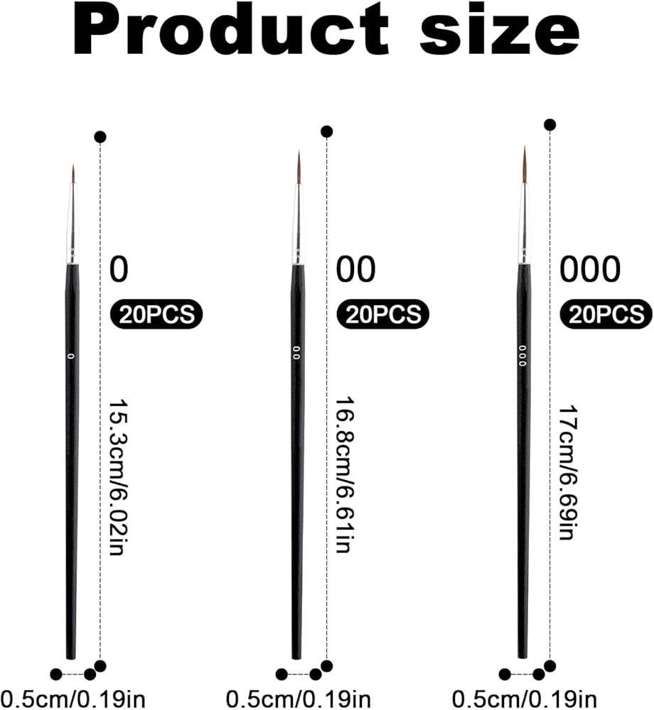 Product Content: You will receive 60 pieces of detail paint brushes with 3 models, including 0/00/000. Sufficient quantity and assorted models can meet your various painting needs and replacements.