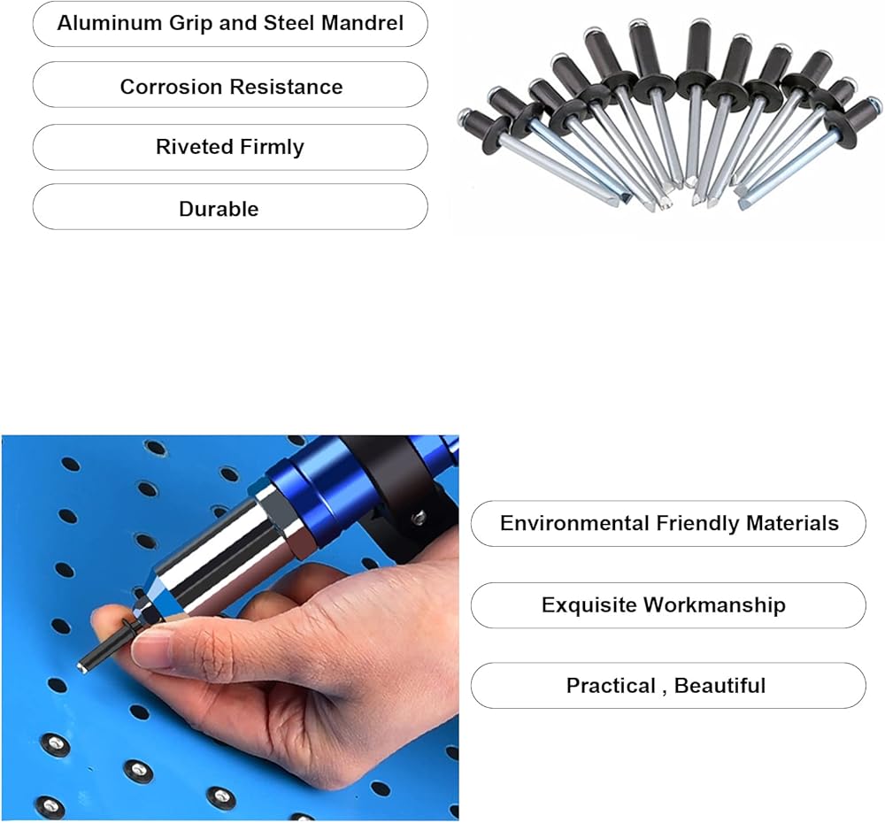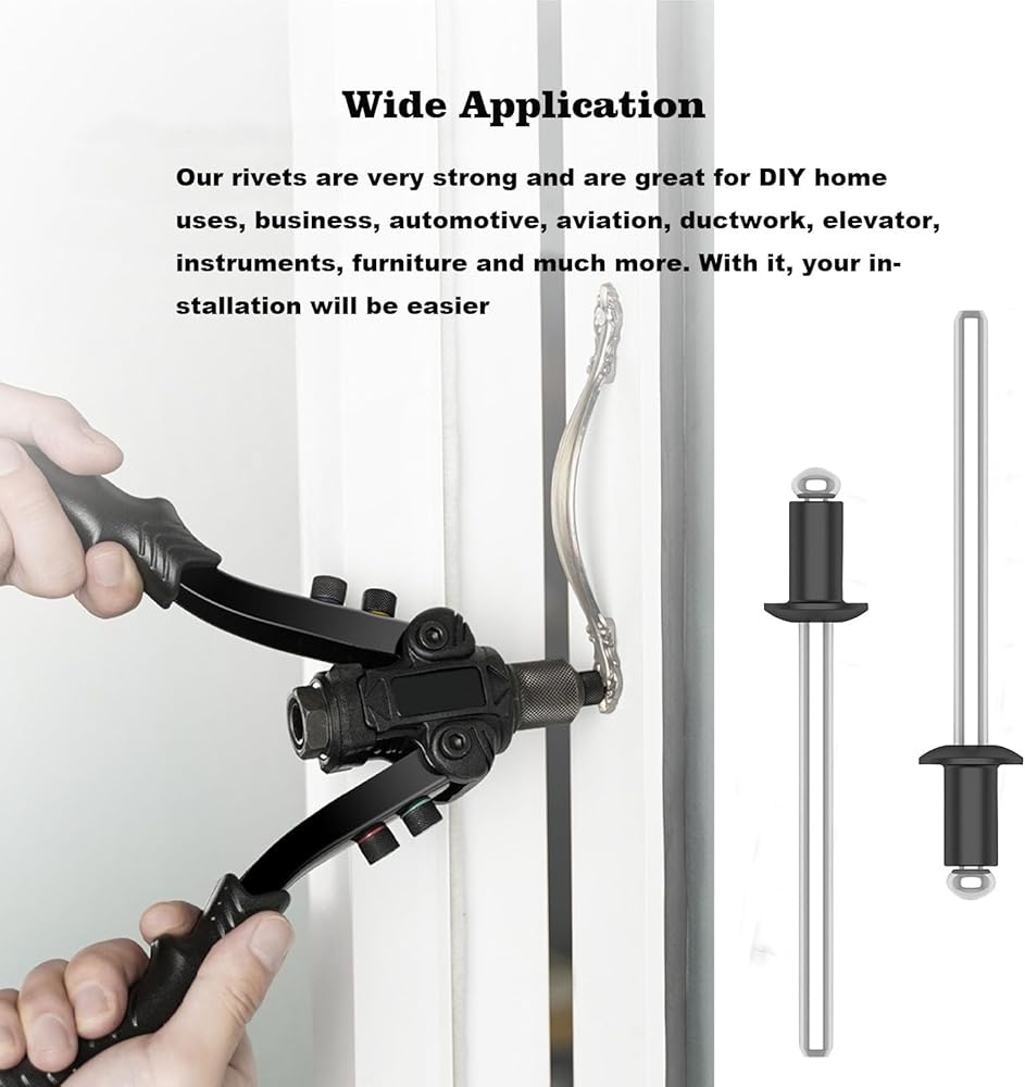 • 【Wide Application】- Our rivets are very strong and are great for DIY home uses, business, automotive, boat, aviation, ductwork, elevator, instruments, furniture and much more. With it, your installation will be easier