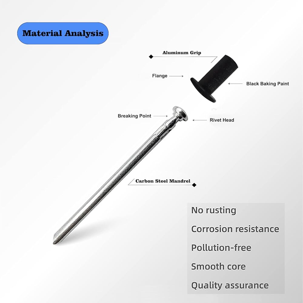 • 【Quality Material】- Rivets are made of high-quality aluminum, with a smooth surface without burrs, which better fits the rivet holes