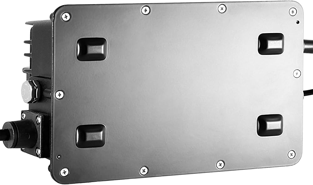 [صب الألومنيوم] الغلاف مصنوع من الألومنيوم المصبوب، الشاحن مملوء بغراء AB لحماية وتبريد اللوحة الرئيسية والمكونات، تصنيف مقاوم للماء والغبار IP66، طول كابل تيار متردد 5 أقدام، طول كابل تيار مستمر 10 أقدام ; مقبض حمل مريح، وزن المنتج حوالي 6.6 رطل.