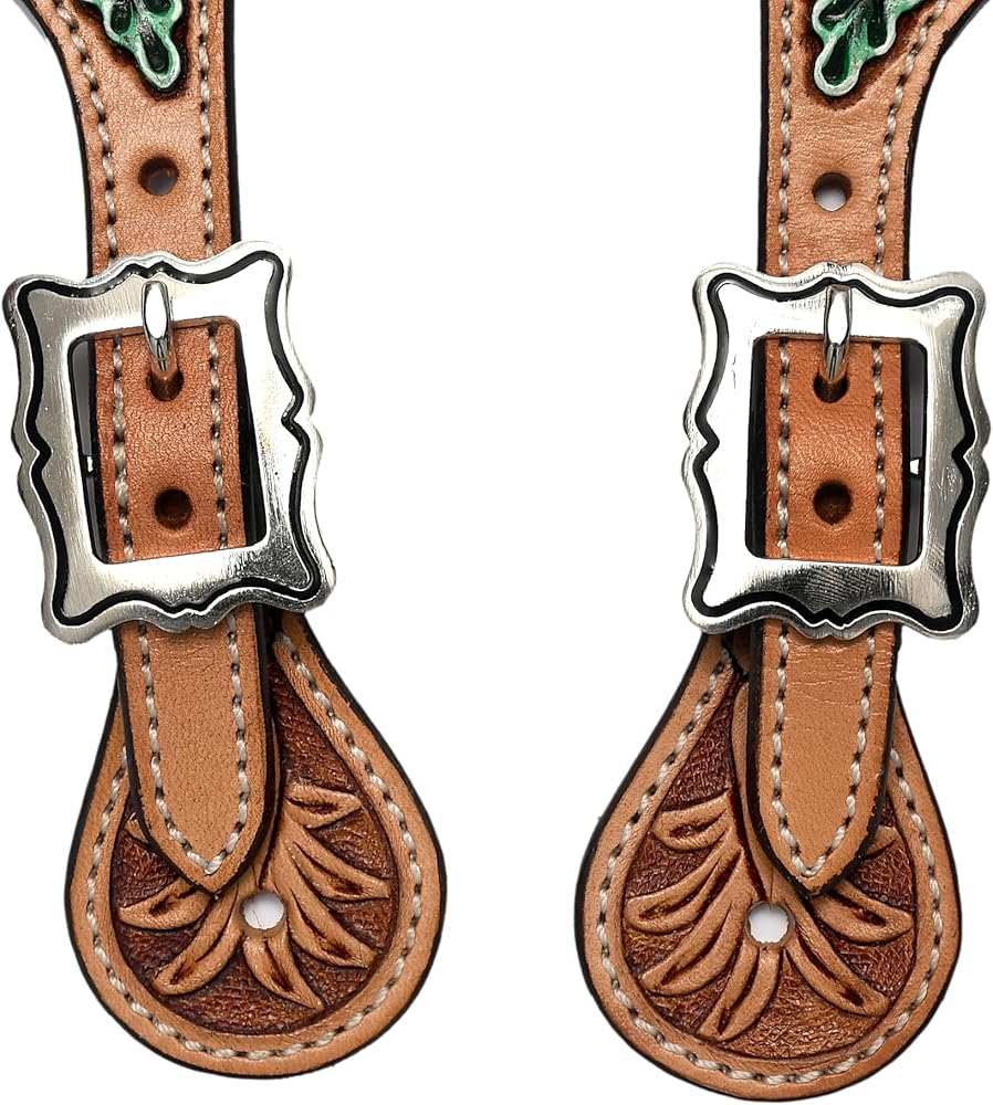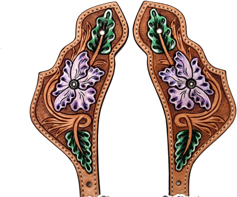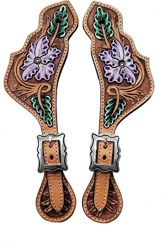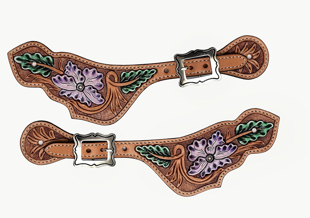 أشرطة جلدية مزخرفة بالزهور قابلة للتعديل لركوب الخيل | حواف ممتازة مع إبزيم مطلي بالنيكل خالٍ من الصدأ | معدات الفروسية الغربية للجنسين للرجال والنساء | يناسب أحذية رعاة البقر