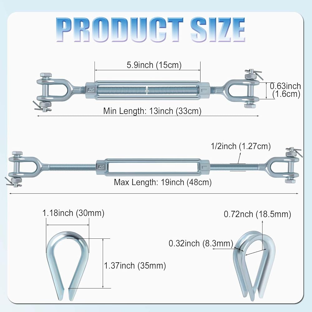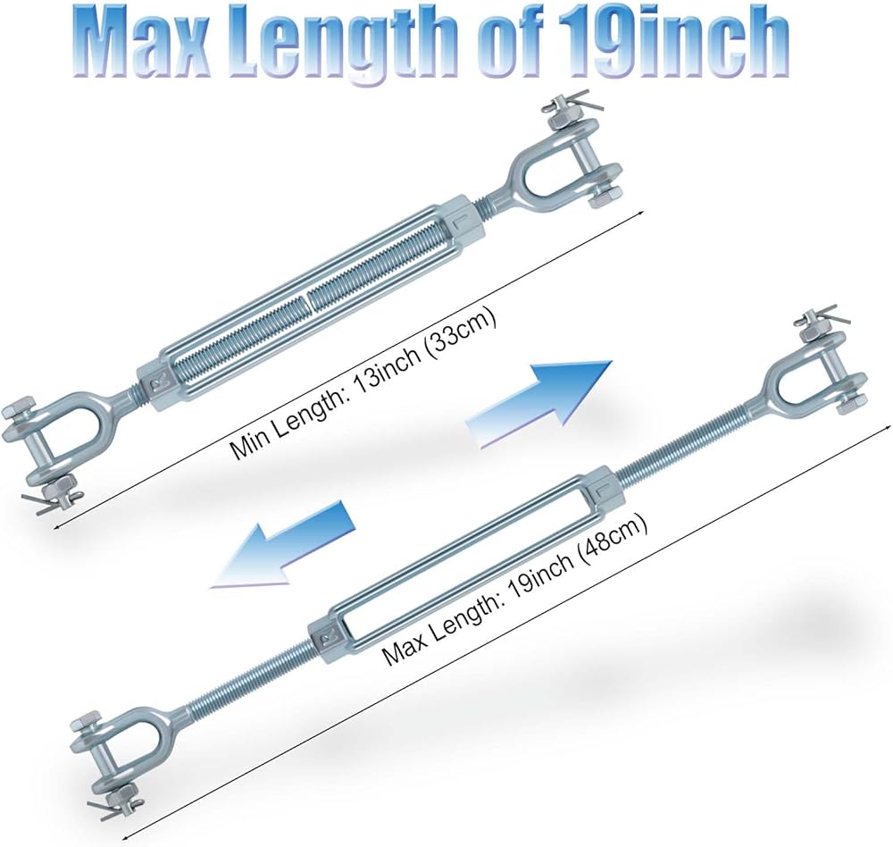 ✅【Easy Eonnection】يربط حبل حد حمل العمل الذي يبلغ 2200 رطل التركيبات الطرفية بإحكام دون الحاجة إلى إعادة توصيل متكررة. يمكن تعديل التركيبات شديدة التحمل لتناسب الأطوال المطلوبة. قم بفك التركيبات إلى الحد الأقصى لطولها.