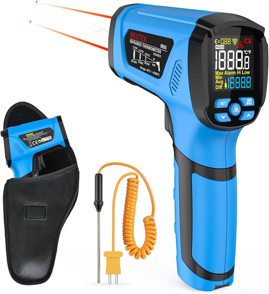 تطبيقات واسعة - يعتبر مسدس ميزان الحرارة Mestek 800A احترافيًا للغاية في اختبار درجة حرارة السطح لمختلف التطبيقات وخاصة درجات الحرارة فوق نقاط الغليان وتحت نقاط التجمد. بما في ذلك الطبخ والخبز والشواء وأفران البيتزا والشوي والأطعمة المجمدة والتدفئة والتهوية وتكييف الهواء والمحركات والشوايات المتطورة والثلاجات وفحص المنزل والمزيد. سيكون مسدس درجة حرارة الليزر الذي يعمل بالأشعة تحت الحمراء مساعدًا رائعًا للقيام بالأعمال المنزلية أو التجارية.