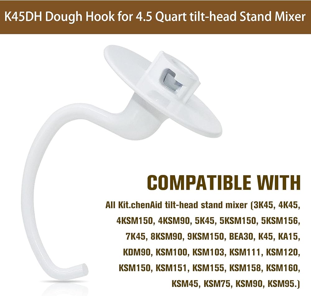 نموذج قابل للتطبيق - خطاف العجين الخاص بنا لخلاط حامل كيتشن ايد متوافق مع جميع خلاطات كيتشن ايد القابلة للإمالة 3K45، 4K45، 4KSM150، 4KSM90، 5K45، 5KSM150، 5KSM156، 7K45، 8KSM90، 9KSM150، BEA30، K45، KA15، KDM90، KSM100، KSM103، KSM111، KSM120، KSM150، KSM151، KSM155، KSM158، KSM160، KSM45، KSM75، KSM90، KSM95.