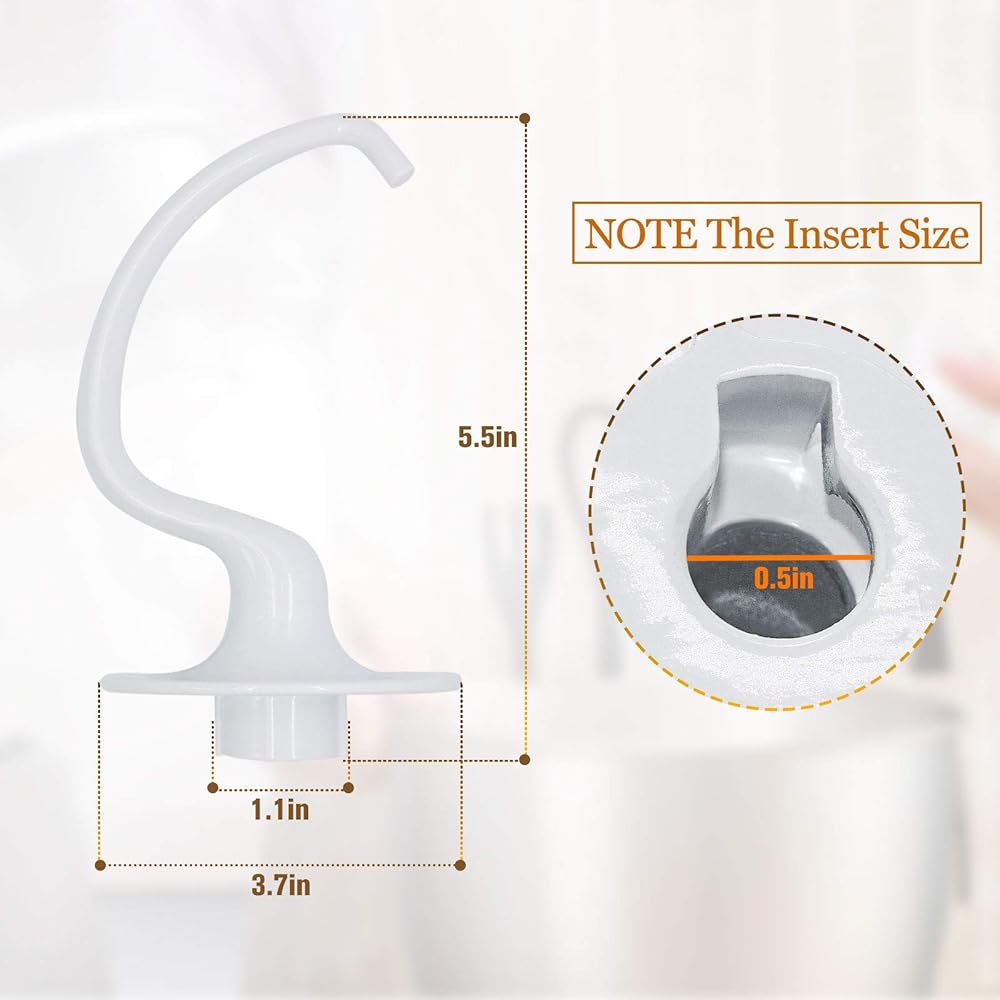 نماذج متوافقة - خطاف عجين K45DH للمطبخ. خلاط حامل 4.5/5 لتر، يستبدل W10674618، WPW10674618، 3183589، 9707671، 9708471، 4176069، 4162152. يبلغ طول خطاف عجينة الخلاط حوالي 5.5 بوصة وعرضه 3.7 بوصة.