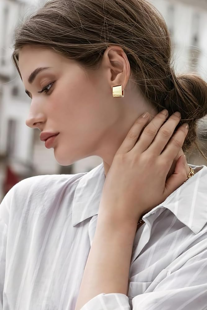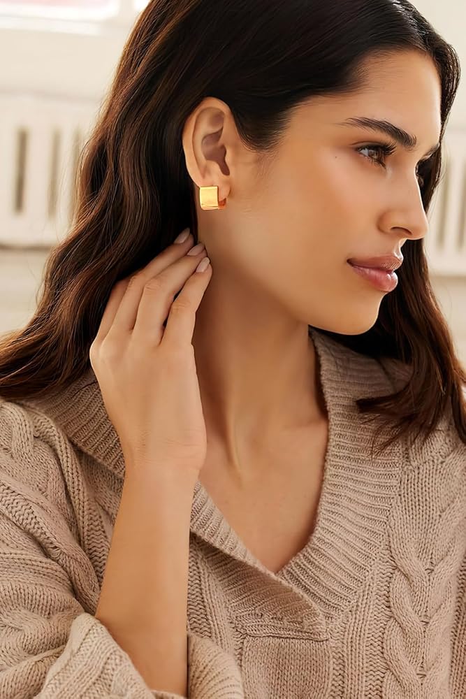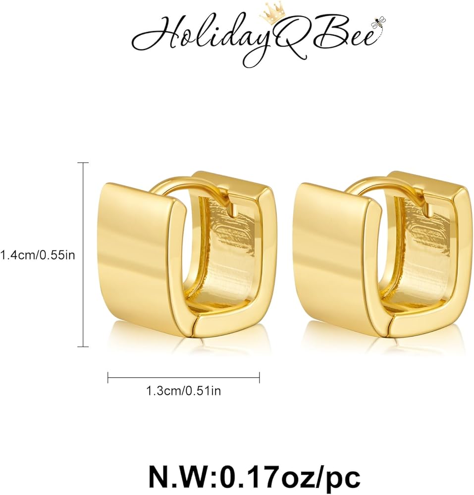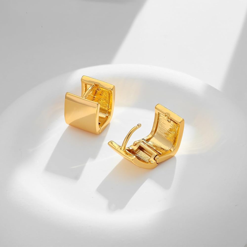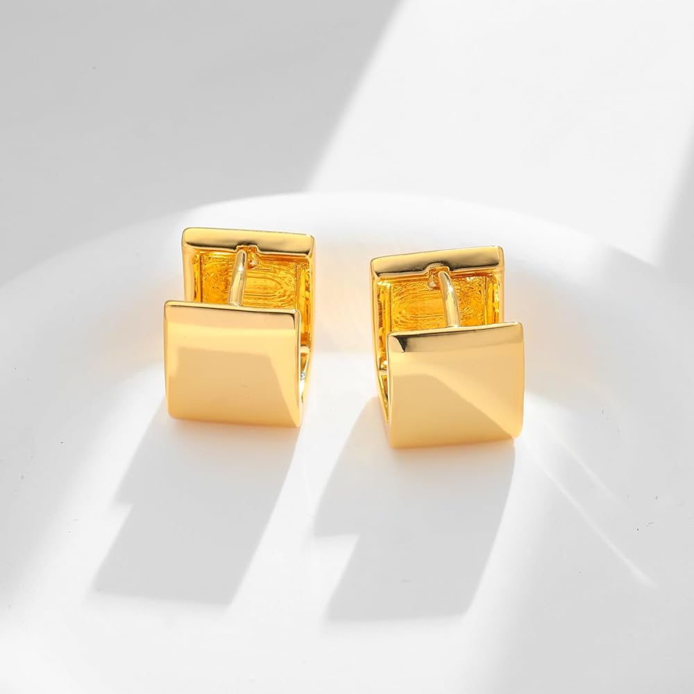 【High Quality Material】:This gold square hoop earrings is made of high quality brass, no lead, no nickel, wear-resistant, not easy to break, waterproof and sweat resistant, can be worn for a long time, low sensitivity, very suitable for your sensitive ears to wear.