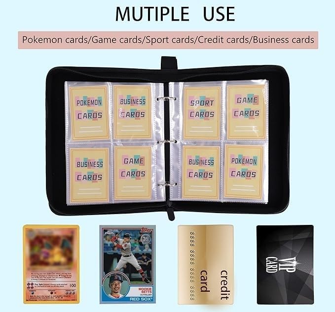 • Applicable: The card binder can be used to collect game cards, trading cards, business cards, sports cards (baseball/ soccer cards), credit cards, etc. It is the perfect gift for anyone who loves to collect cards.