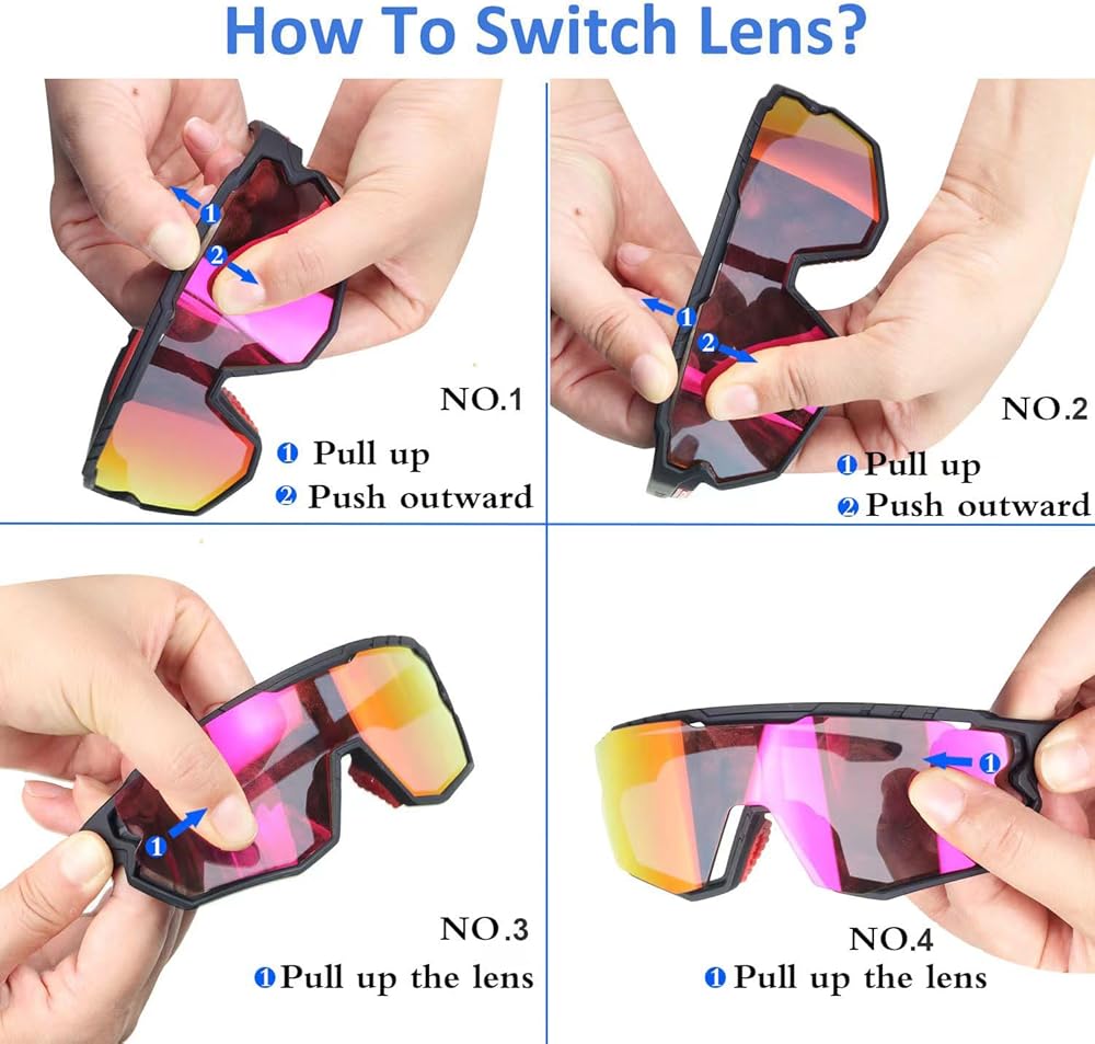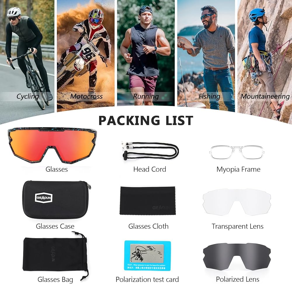 sports sunglasses are made of high quality polarized lenses (grey lenses), 100% UVA and UVB filtering (clear lens coloured lenses), reducing reflections and glare for clearer vision.