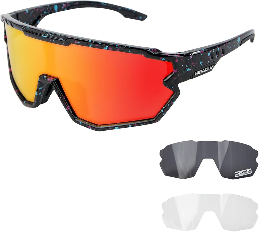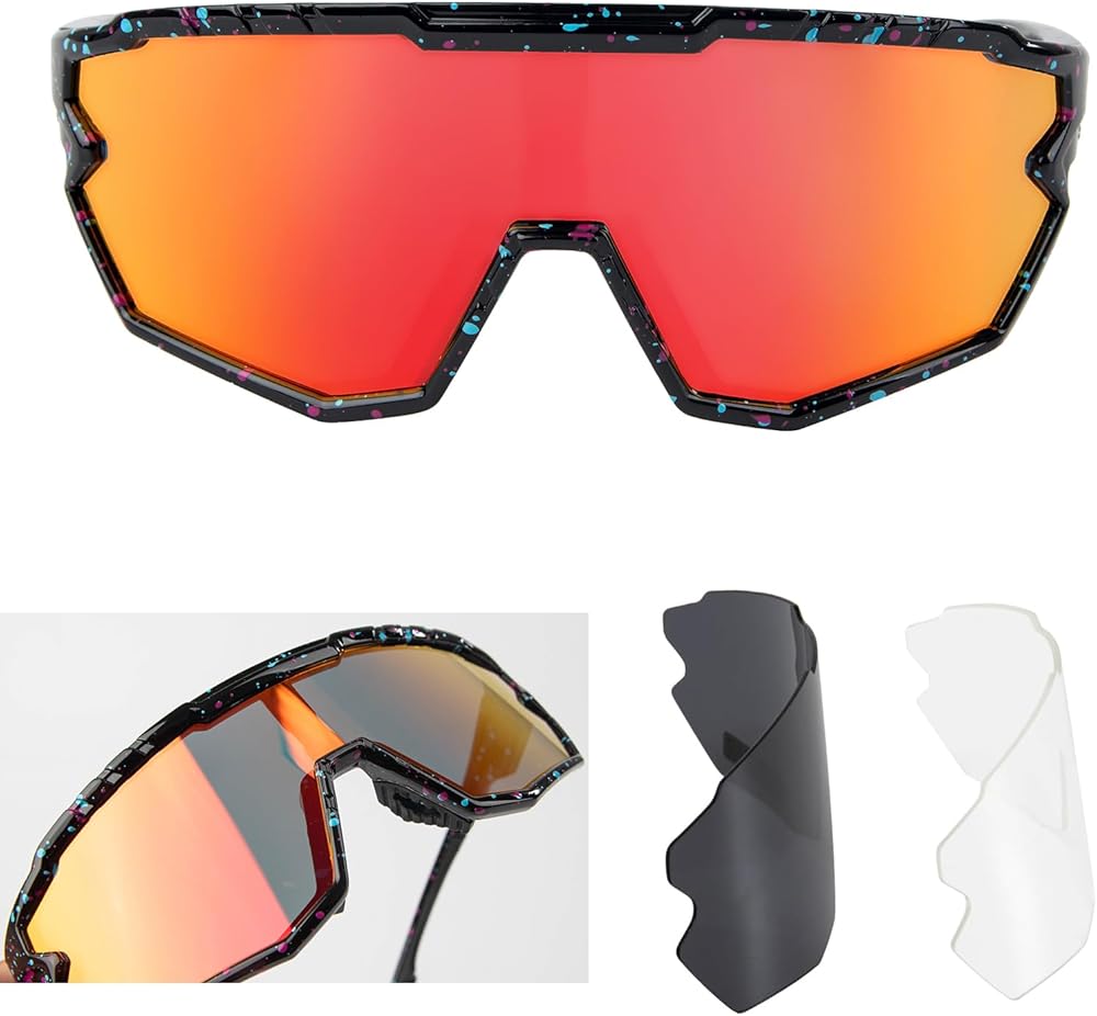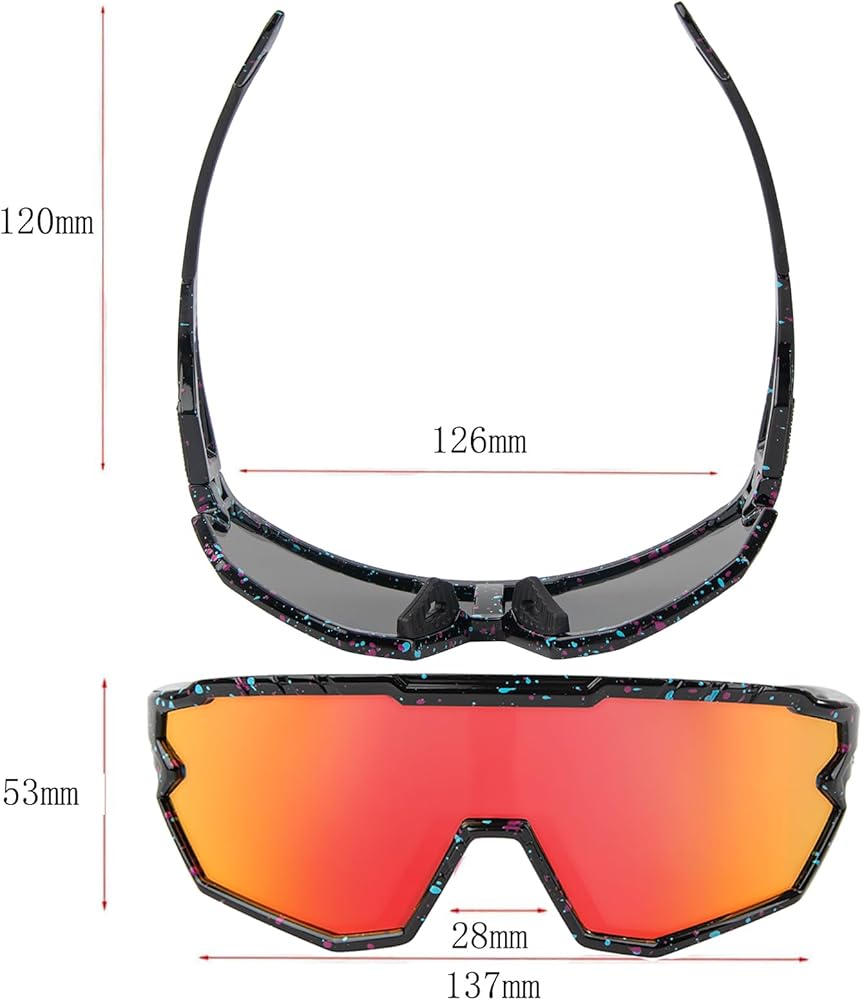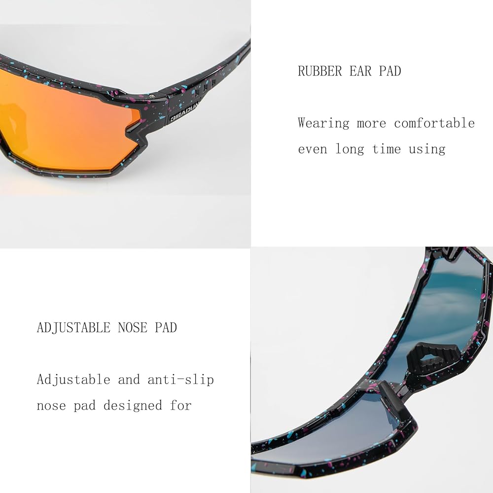 • 【UV400 + Polarized Lenses】This sports sunglasses are made of high quality polarized lenses (grey lenses), 100% UVA and UVB filtering (clear lens coloured lenses), reducing reflections and glare for clearer vision.
