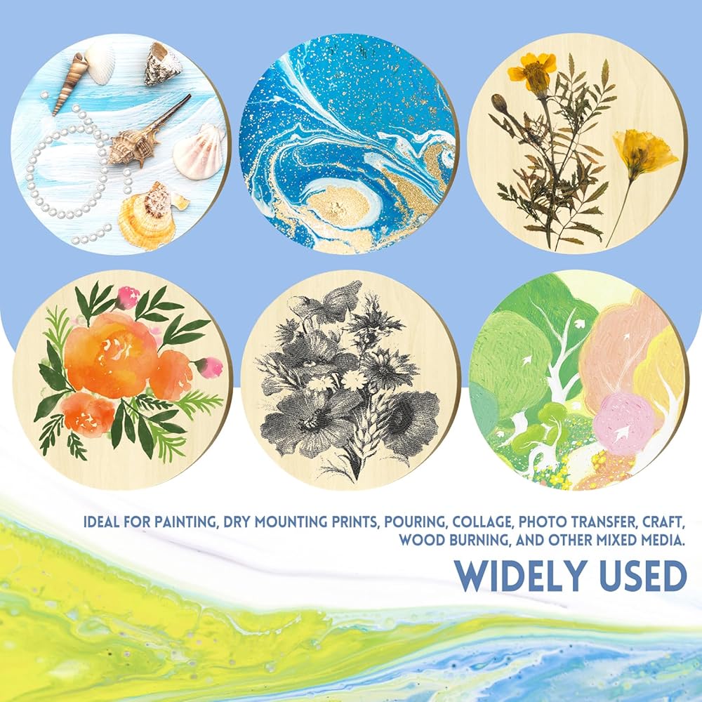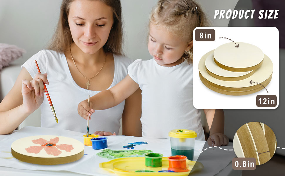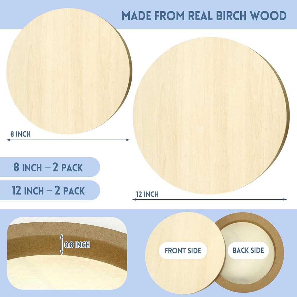 تشتمل العبوة على: 4 لوحات قماشية مستديرة من خشب البتولا، قطعتين مقاس كل منها 20.32 سم و30.48 سم بسمك 0.8 سم. كمية كافية تلبي احتياجاتك اليومية.