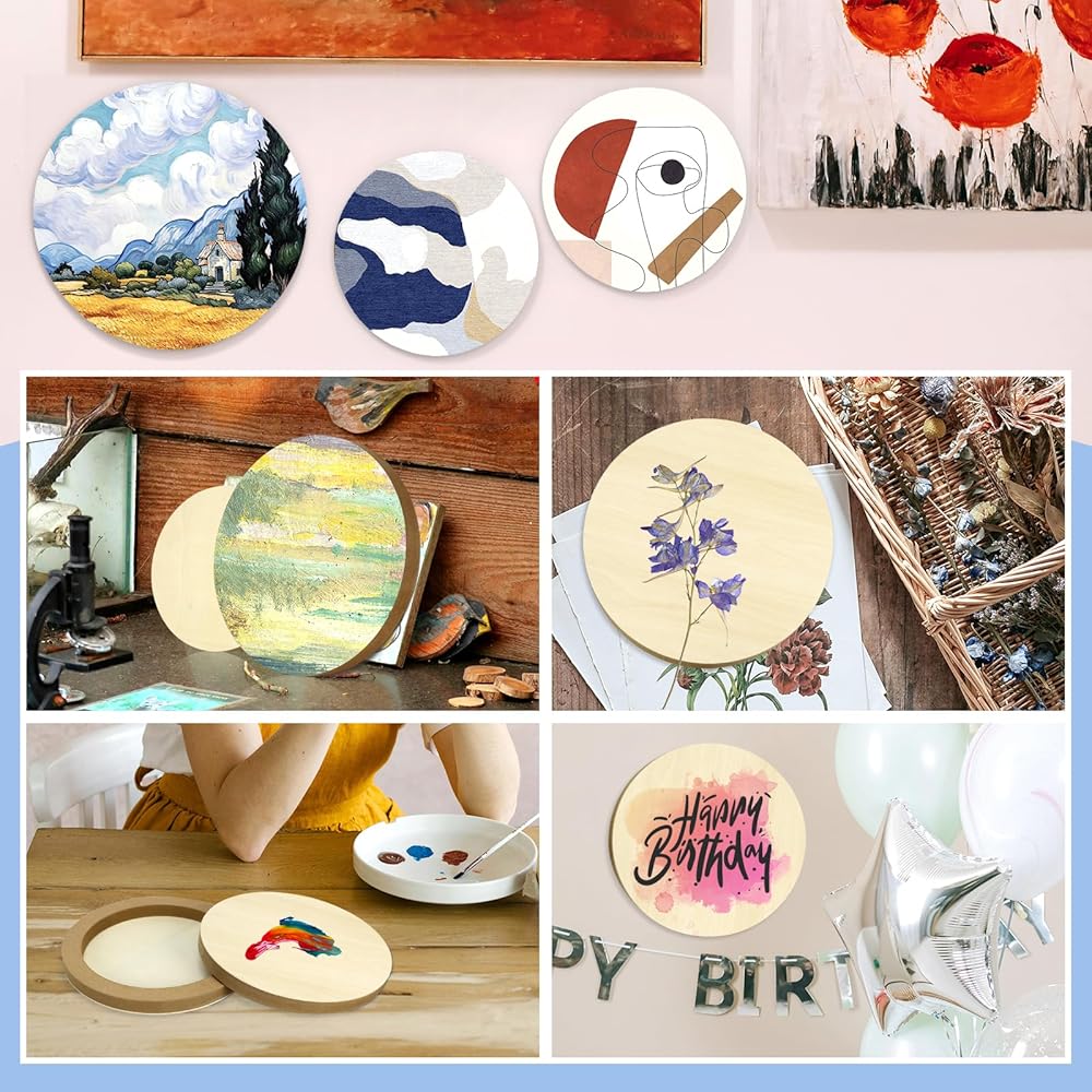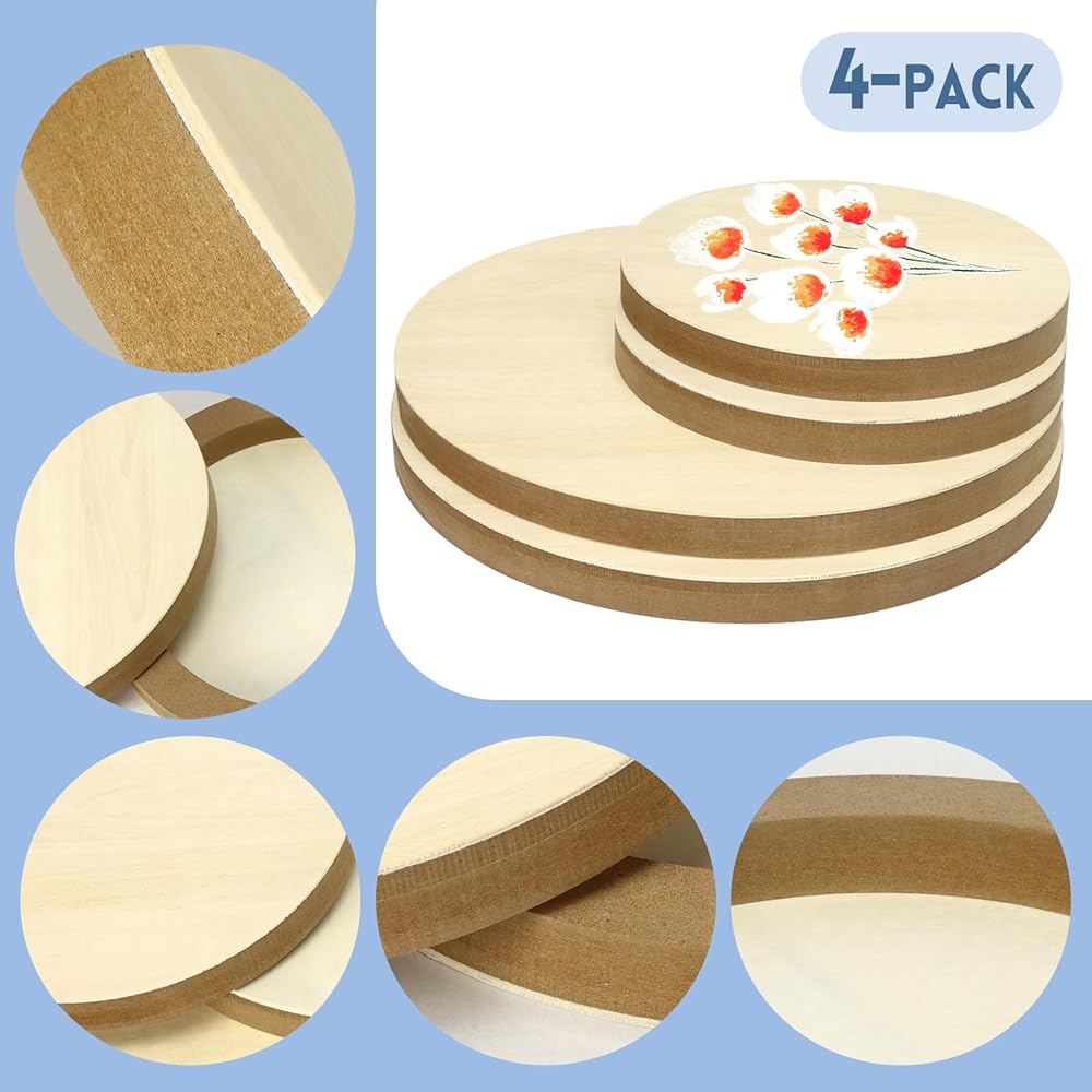 4 عبوات من لوحات قماشية خشبية غير مكتملة مقاس 30.48 سم و20.32 سم، مجموعة لوحات خشبية مستديرة للحرف اليدوية، وقماش الرسم، والمشروعات الفنية التي تصنعها بنفسك، والصب، واستخدام الفنون مع الزيوت والأكريليك