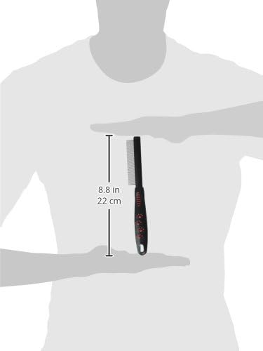 The Paw Brothers flea comb with handle has round stainless steel pins for penetrating all types of coats. The tight spacing of the pins removes fleas, flea eggs, and find dust and debris. The handle is comfortably shaped with non-slip grips.