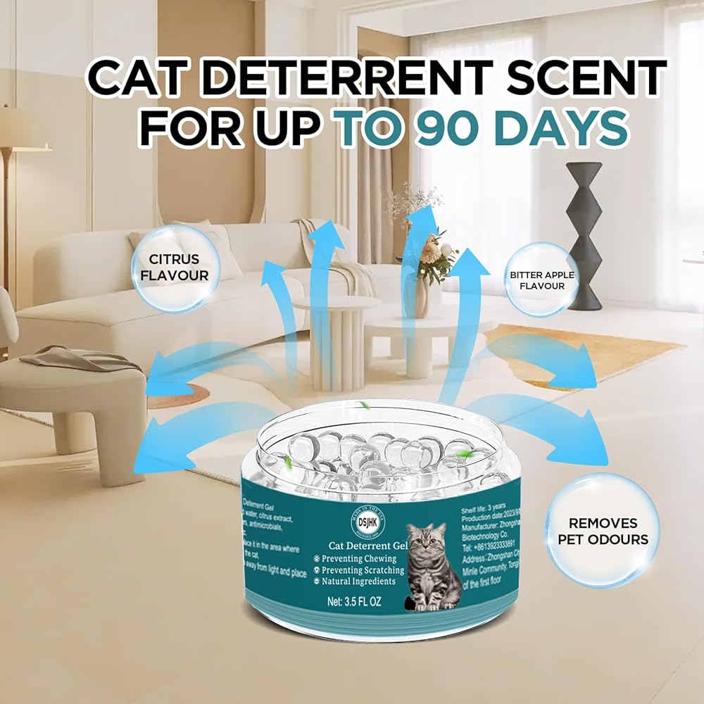 【Cat Deterrent Scent for up to 90 Days】Cat Deterrent Gel Beads continues to emit citrus and bitter apple odours, which are annoying to cats and dogs, for up to 90 days over a 450 sq. ft. area. Cat Deterrent Gel Beads leaves a light, pleasant scent that is not overpowering.