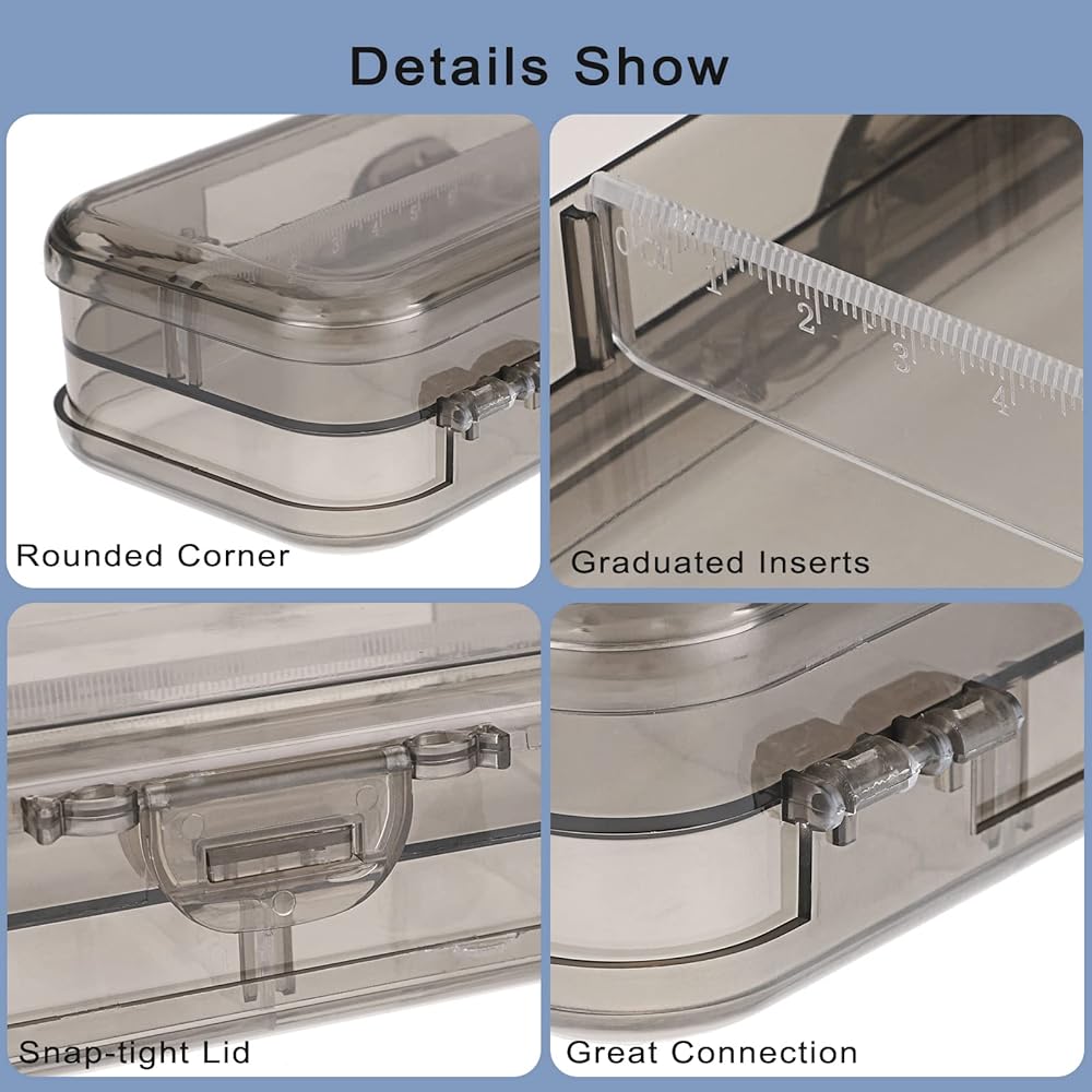 إدراجات قابلة للإزالة مع مقياس: صندوق الأدوات المكتبية مجهز بثلاثة إدراجات قصيرة متدرجة وواحدة طويلة، والتي تقسم الصندوق إلى ستة أقسام. الإدخالات قابلة للإزالة بحرية وتسمح لك بتنظيم المساحة الداخلية للصندوق بمرونة. يمكنك أيضًا استخدام الملحق كمسطرة صغيرة. يساعد التصميم المقسم في الحفاظ على جميع الأدوات المكتبية أو اللوازم اليدوية منظمة ويمنعك من فقدان الأدوات المكتبية وغيرها من الأشياء الصغيرة.