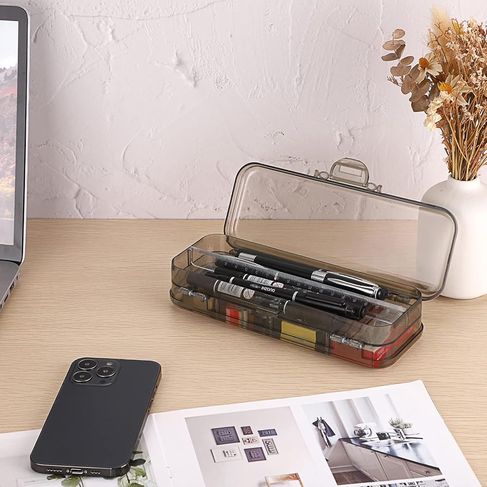 صندوق منظم متعدد الأغراض: يمكن استخدام علبة الأقلام البلاستيكية الشفافة هذه ليس فقط لتخزين أقلام الرصاص والقلم والممحاة والمسطرة وغيرها من الأدوات المكتبية، ولكن أيضًا لتخزين اللوازم المكتبية مثل مشابك الورق والدبابيس وما إلى ذلك. كما أنها مناسبة لفرز المجوهرات واللوازم الحرفية مثل القلائد والأقراط والخرز. حافظ على مكتبك أو حقيبتك نظيفة ومرتبة.