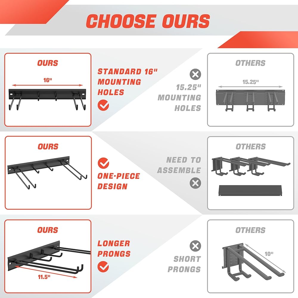 وظائف متعددة الاستخدامات: تتضمن خطافًا واحدًا للتخزين المريح للأعمدة والخوذ، مما يضيف تنوعًا إلى خيارات التخزين الخاصة بك.