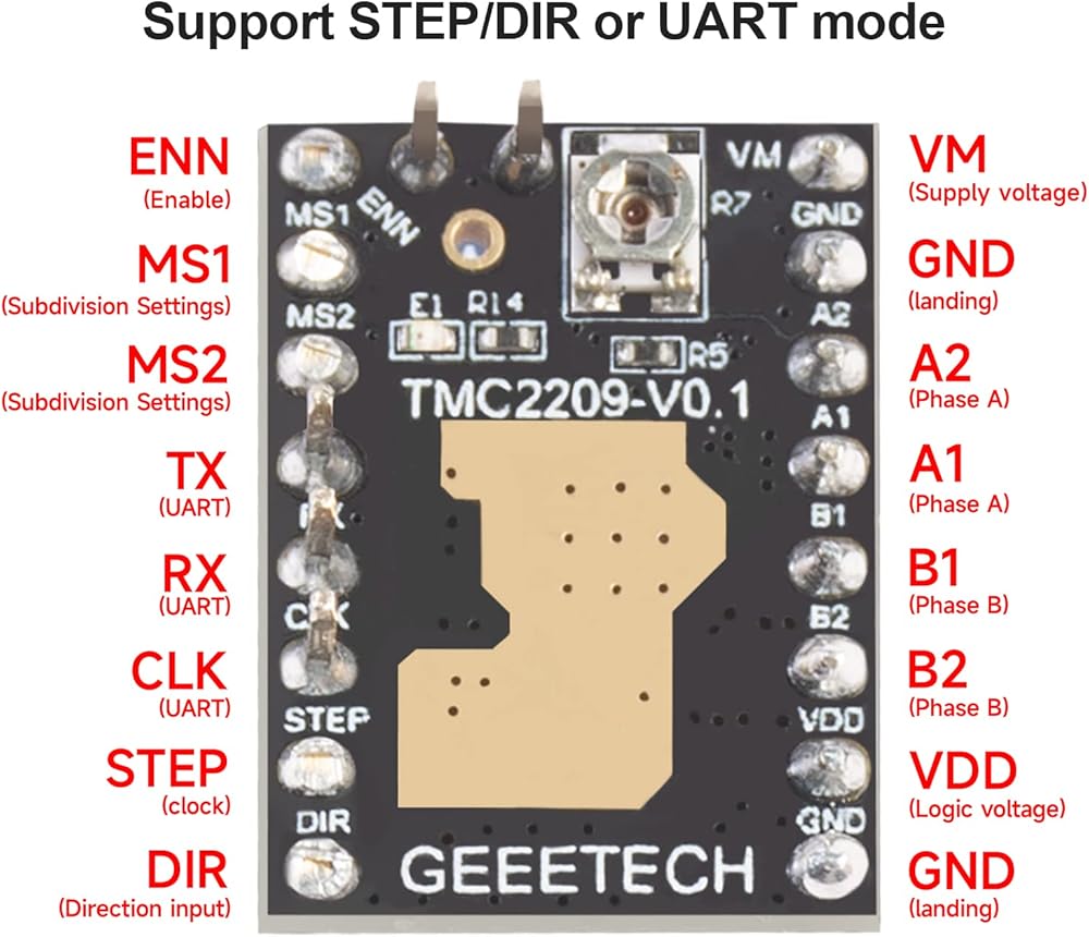 - مناسبة لقيادة المحركات السائر تحت 2A عند 8 ~ 35 فولت. 5 أوضاع خطوة قابلة للتحديد: كامل، 1/2، 1/4، 1/8 و1/16. متعددة الاستخدامات للطابعات ثلاثية الأبعاد وآلات CNC ونقاشات الليزر والمزيد.