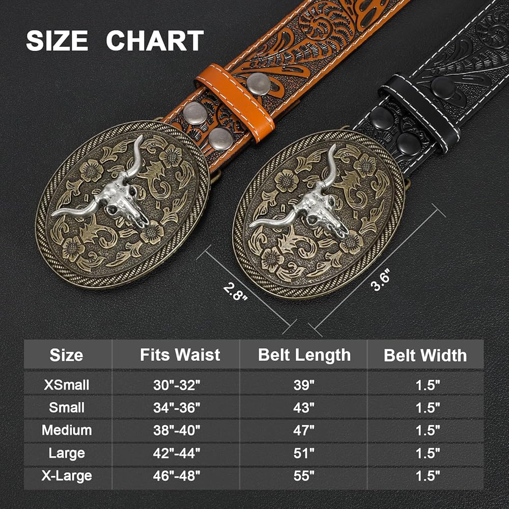 SANSTHS Mens Western Belts for Cowboy, 3 Western Belt Straps &1 Cowboy Belt Buckle for 42"-44" Waist