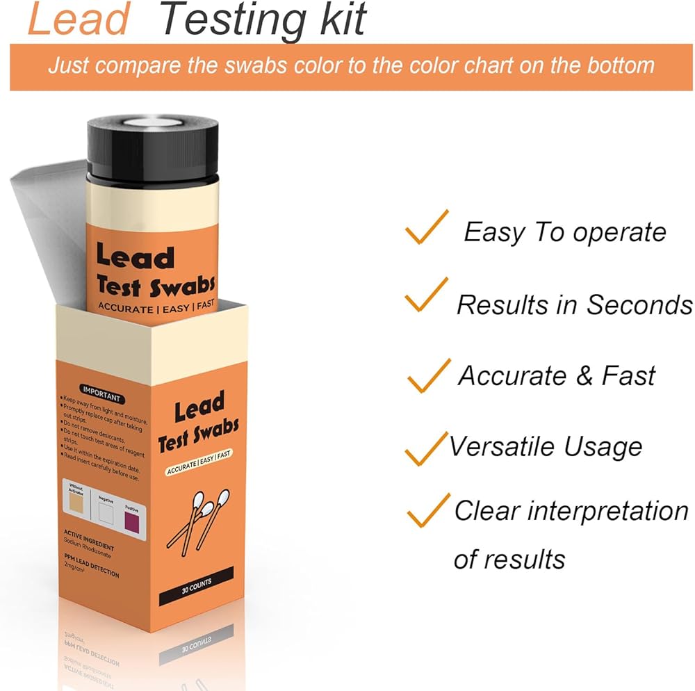 【مجموعة اختبار مطورة】: يحتوي كل صندوق على 30 قطعة من مسحات فحص الرصاص، مما يوفر حلاً فعالاً ومريحًا وقيمًا لاختبار الرصاص في المنزل. العمر الافتراضي هو 2 سنة.