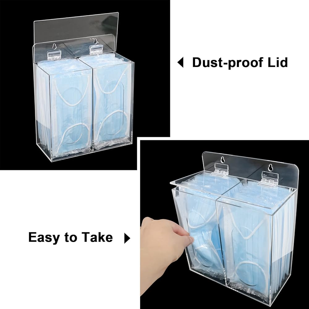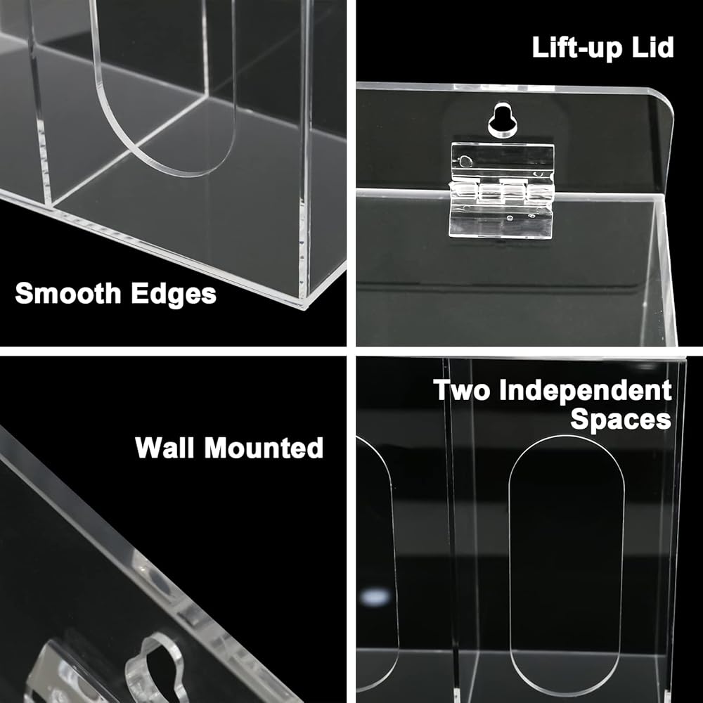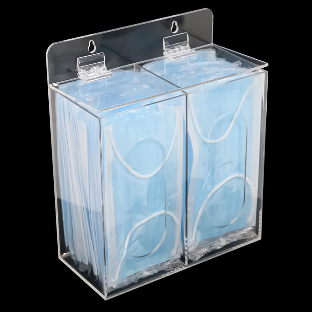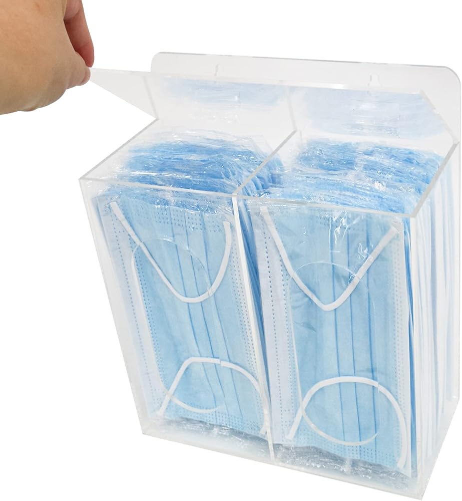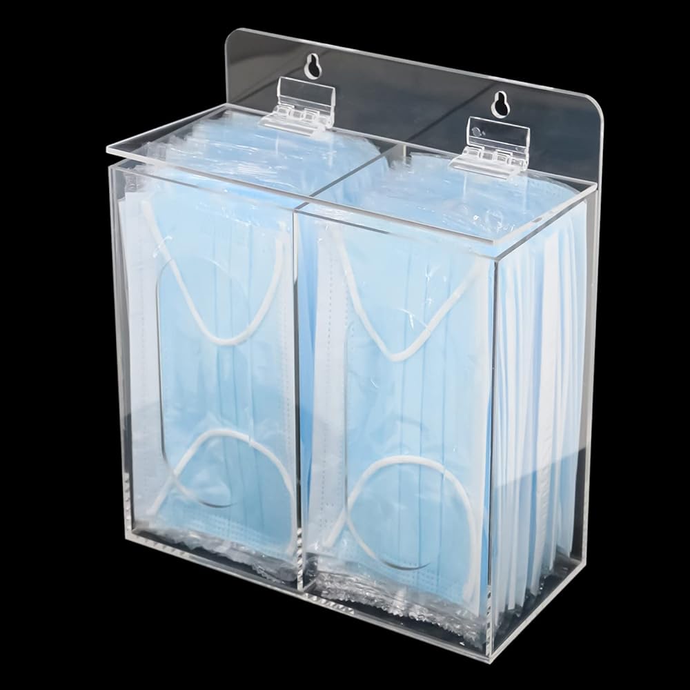 صندوق توزيع قناع الوجه الأكريليكي، حامل قفاز قناع شفاف مثبت على الحائط أو محطة نظافة على سطح الطاولة مع غطاء للأقنعة التي تستخدم لمرة واحدة، والقفازات، وأغطية الأحذية، وشبكات الشعر