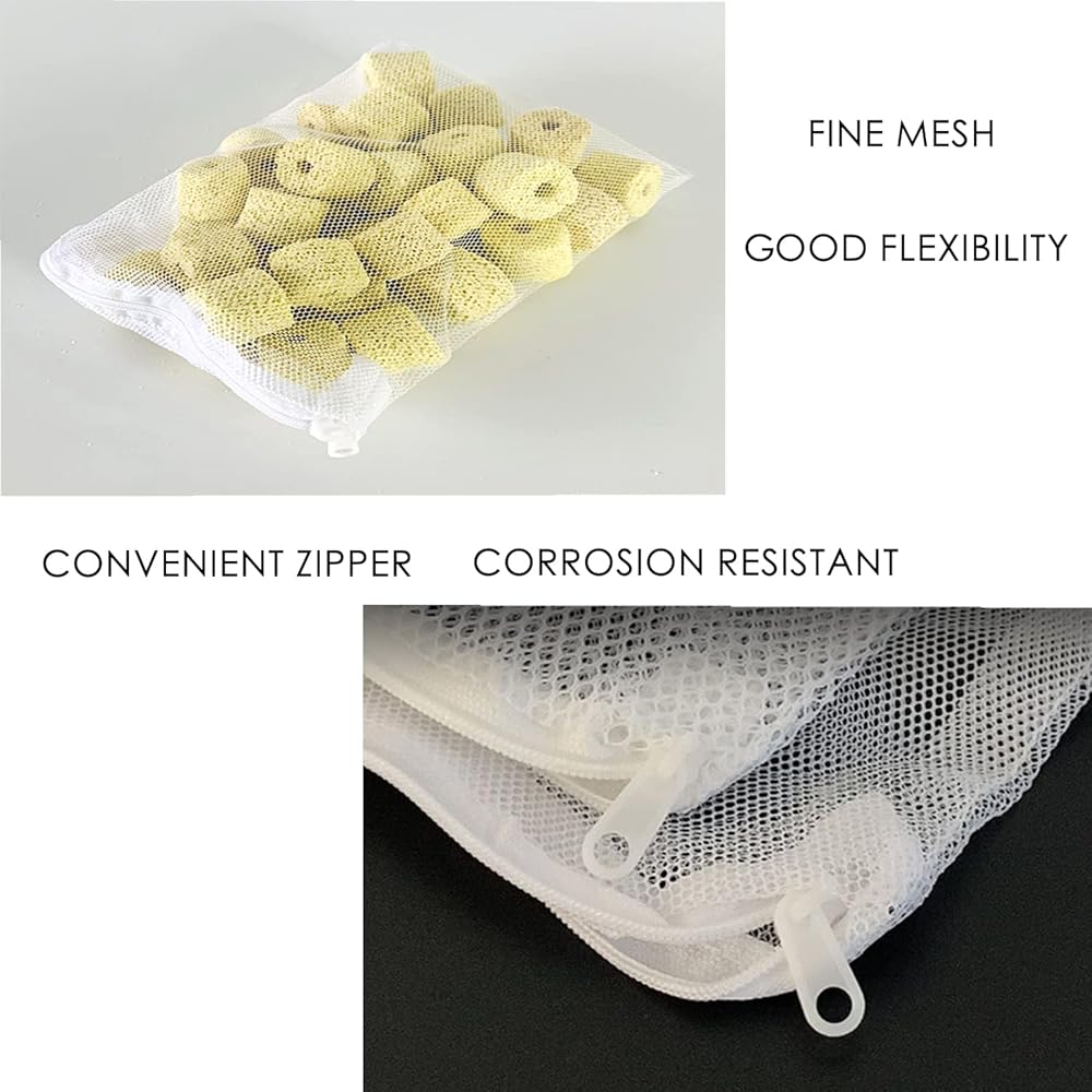 • ADVANTAGES: Place extra fine filter zipper mesh bags filled with your choice of media in flowing water. Help to create a quality living environment for your fish pet. Purified water quality, rapid probiotics cultivation, restore the high-quality water source in nature Your fish pet farming needs a good water source and management