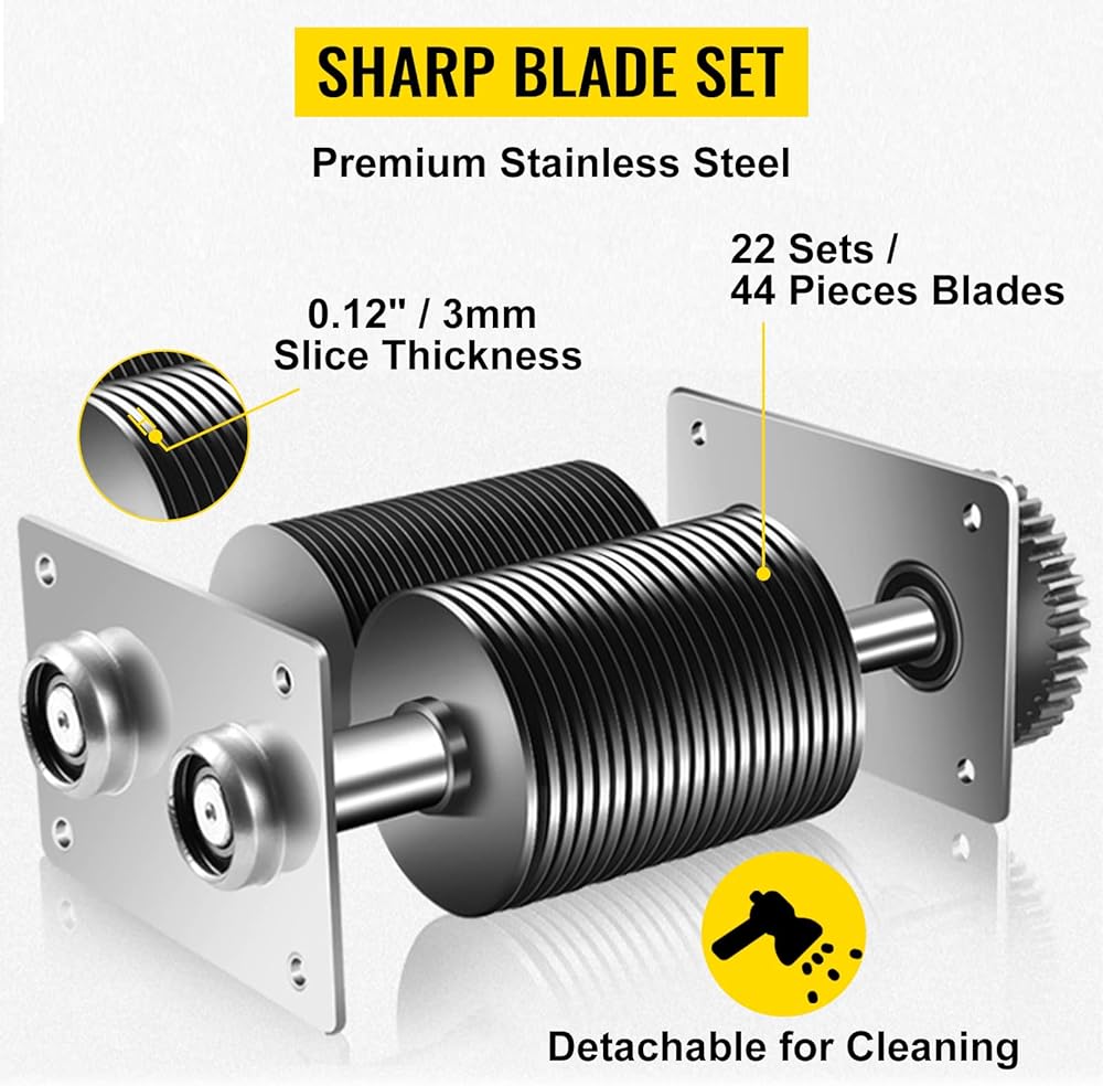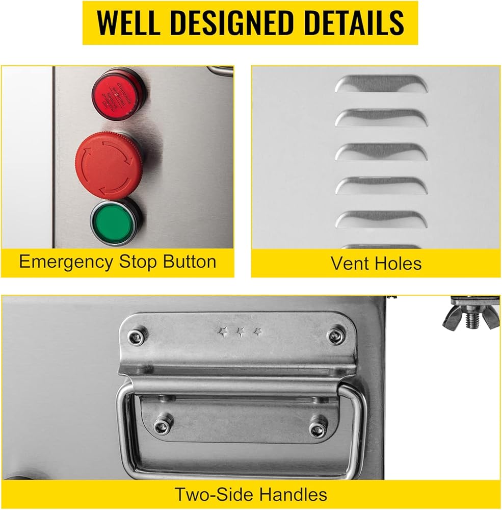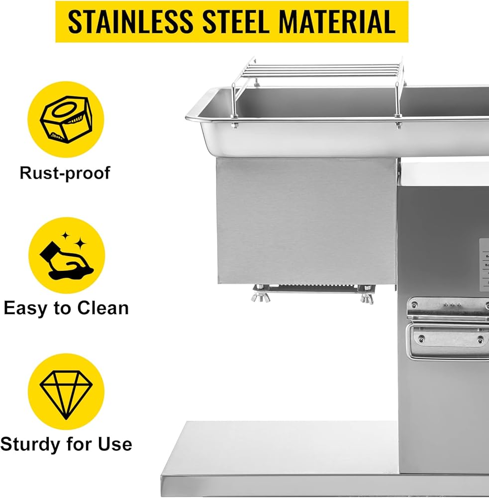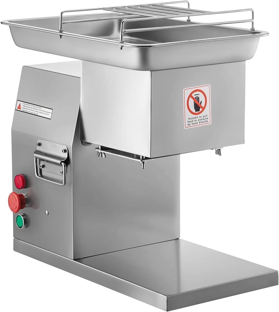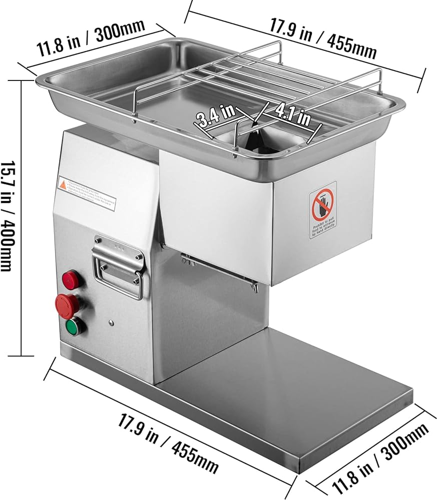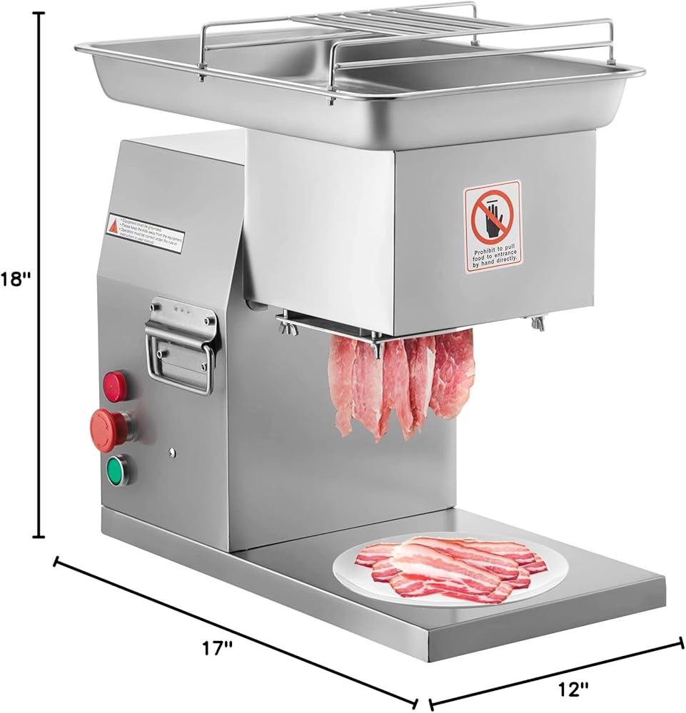 قاطعة اللحوم التجارية: قاطعة اللحوم من الفولاذ المقاوم للصدأ الطاقة: 500 وات، تردد المحرك المقدر: 50 هرتز؛ قدرة العمل 1100 رطل/ساعة؛ سمك القطع: 3 مم، يمكن أن يكون فعالاً في قطع اللحم البقري والخنزير والضأن واللحوم الأخرى إلى قطع، ملاحظة: يمكنك تغيير حجم الشفرة المختلفة حسب احتياجاتك، تتضمن شفرة 3 مم فقط.