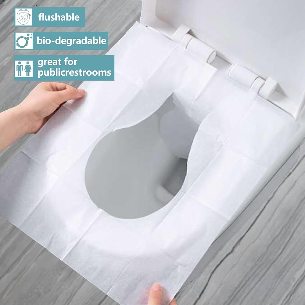 غطاء مرحاض ورقي للاستعمال مرة واحدة (مجموعة مكونة من 60 قطعة) مناسب للأطفال والبالغين المسافرين أو الفنادق والمراحيض العامة، إلخ.) غطاء مقعد مرحاض قابل للتصرف للاستعمال مرة واحدة، سهل الحمل