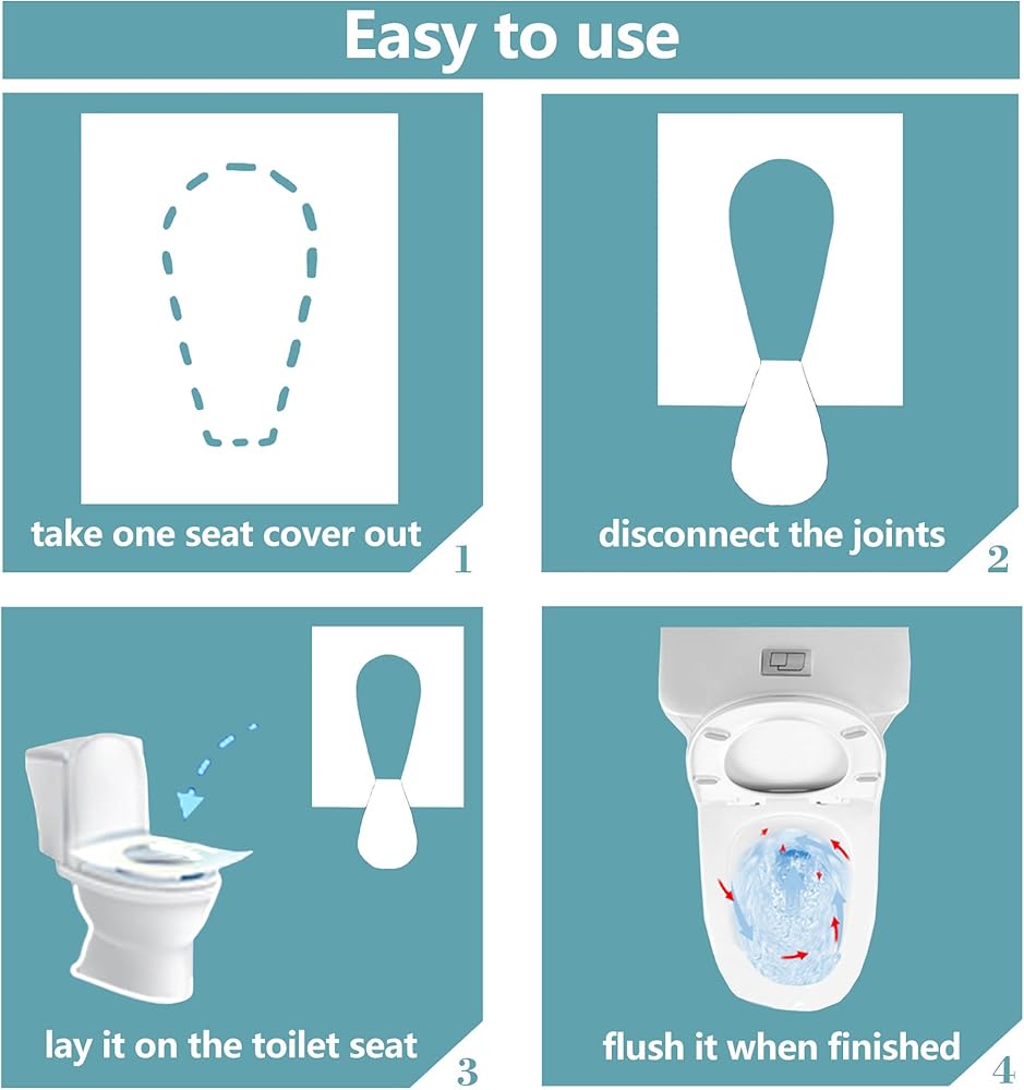 【سهل الحمل】غطاء مقعد المرحاض القابل للتصرف مناسب للأطفال والكبار. قم بتخزين العبوة القابلة للإغلاق في حقيبة أو جيب لتأخذها معك أثناء التنقل أو أثناء السفر.