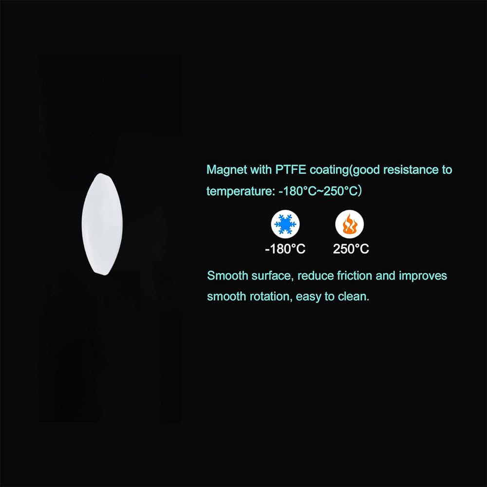 The magnetic stir bar is made from magnet with PTFE coating, the coating is corrosion resistant and has good resistance to high temperatures (temperature tolerance range:-180 ℃~250 ℃), smooth surface, reduces friction and improves smooth rotation, easy to clean.