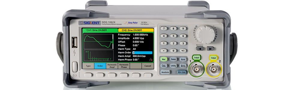 SIGLENT's SDG1000X is a series of dual-channel function/arbitrary waveform generators with specifications that include up to 60 MHz maximum bandwidth, 150 MSa/s sampling rate and 14-bit vertical resolution. The proprietary EasyPulse & TrueArb technique helps to solve the weaknesses inherent in traditional DDS generators when generating pulse waveforms, and the special square generator is capable of generating square waveforms up to 60 MHz in frequency with low jitter. With these advantages, the SDG1000X can provide users with a variety of high fidelity / low jitter signals while meeting the growing requirements of a wide range of complex and varied applications.