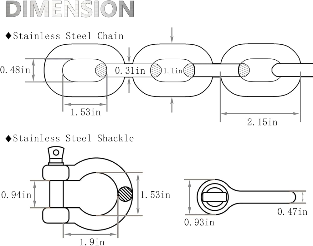 ⛓【قائمة العبوة】قطعة واحدة من سلسلة السحب بطول 6.5 أقدام × 1/4 بوصة، مع قطعتين من الأغلال مقاس 3/8 بوصة.