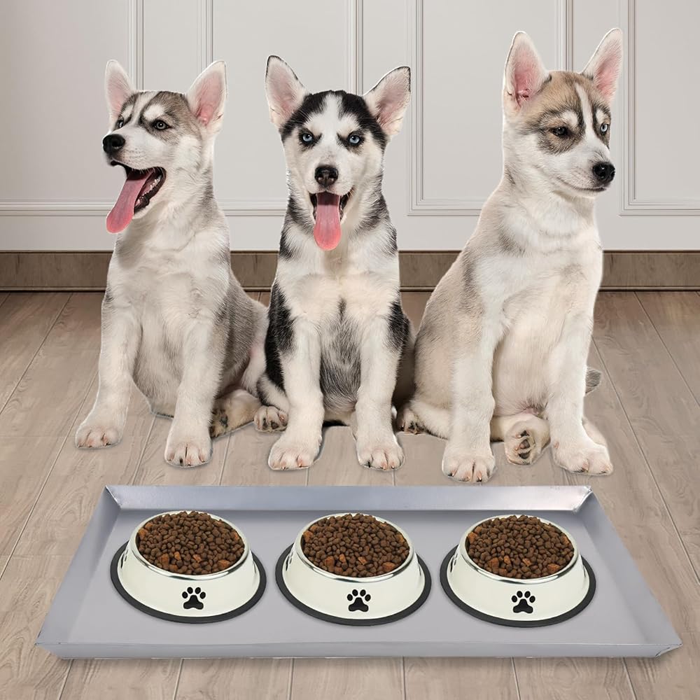 Main functions: The design of the dog tray is smooth and flat in the middle, and the four sides are set up with closed edges to prevent the dog's food and water from sliding out, keep the surrounding clean, and have the function of preventing leakage