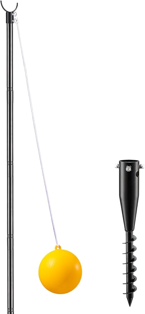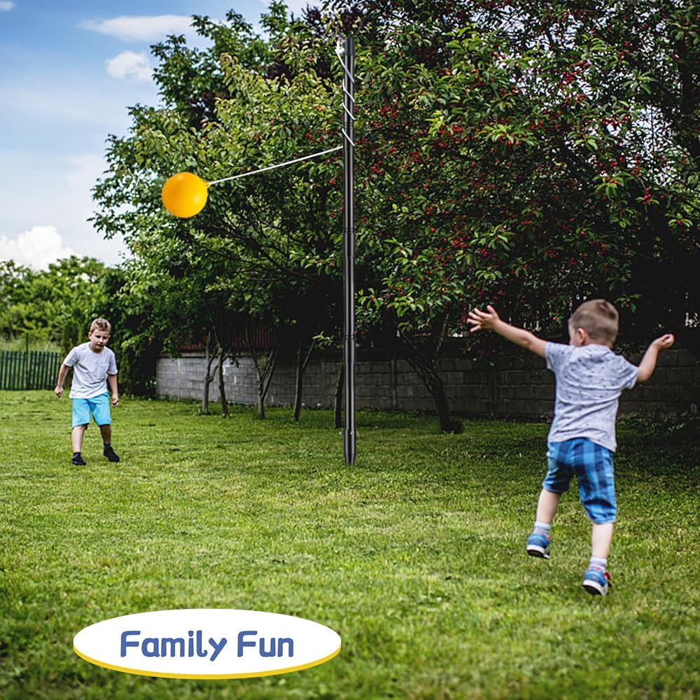 Sturdy & Durable: The pole of our tetherball set is made of strong steel, which is rustproof and windproof to last for long time. The cotton rope is thickened, which doesn't break easily. This outdoor tether ball is standard size and features a soft-touch surface that lessens the impact on your hands, wrists, and arms when hit.