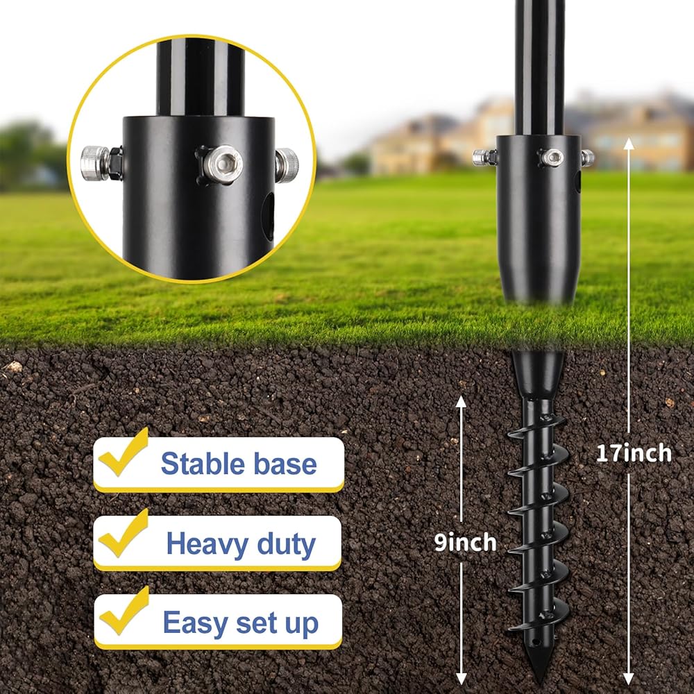 Stable Base: Tetherball set base is constructed with a spiral ground stake to secure the tetherball set firmly to the ground to prevent tilting or wobbling, which is built to withstand intense and action-packed competition.