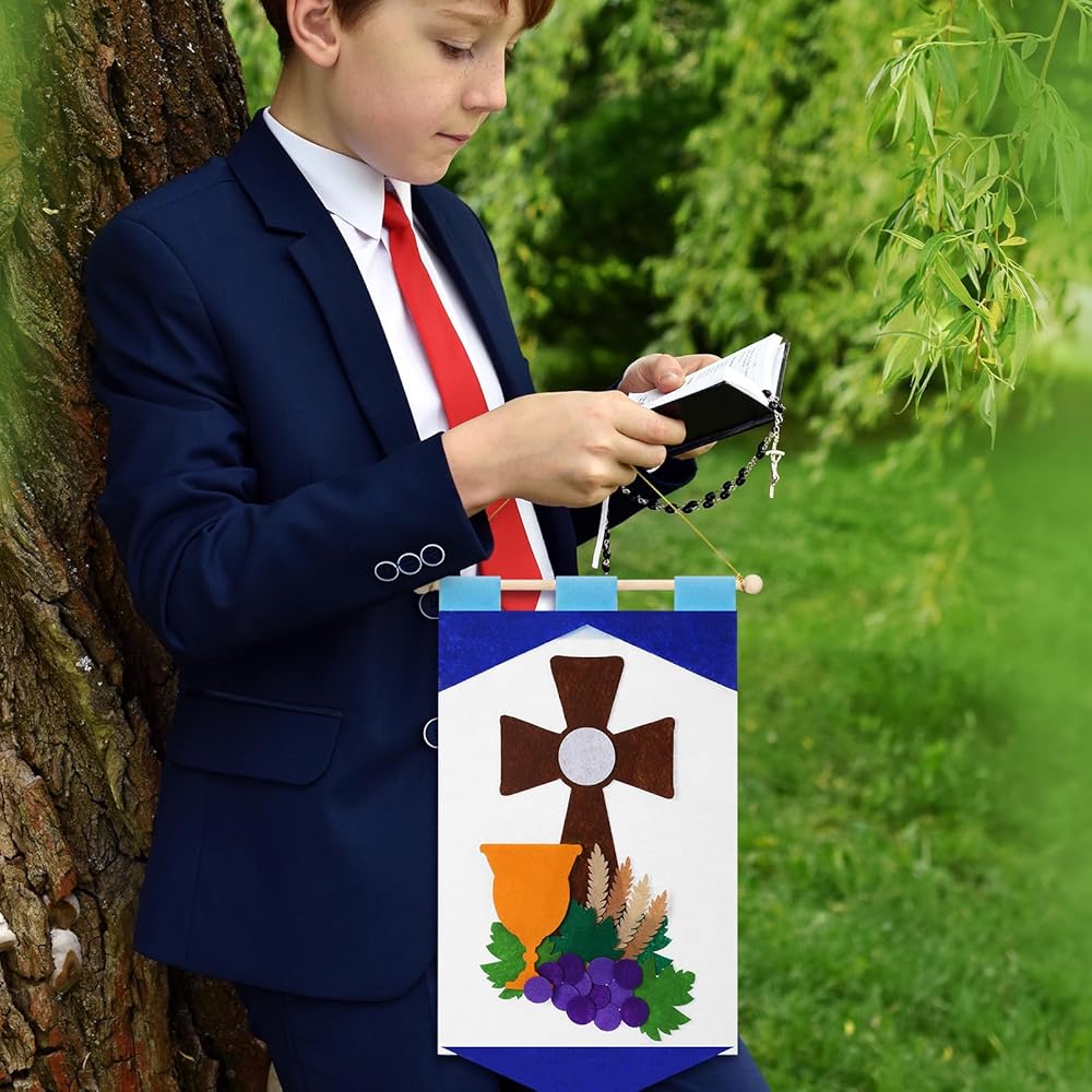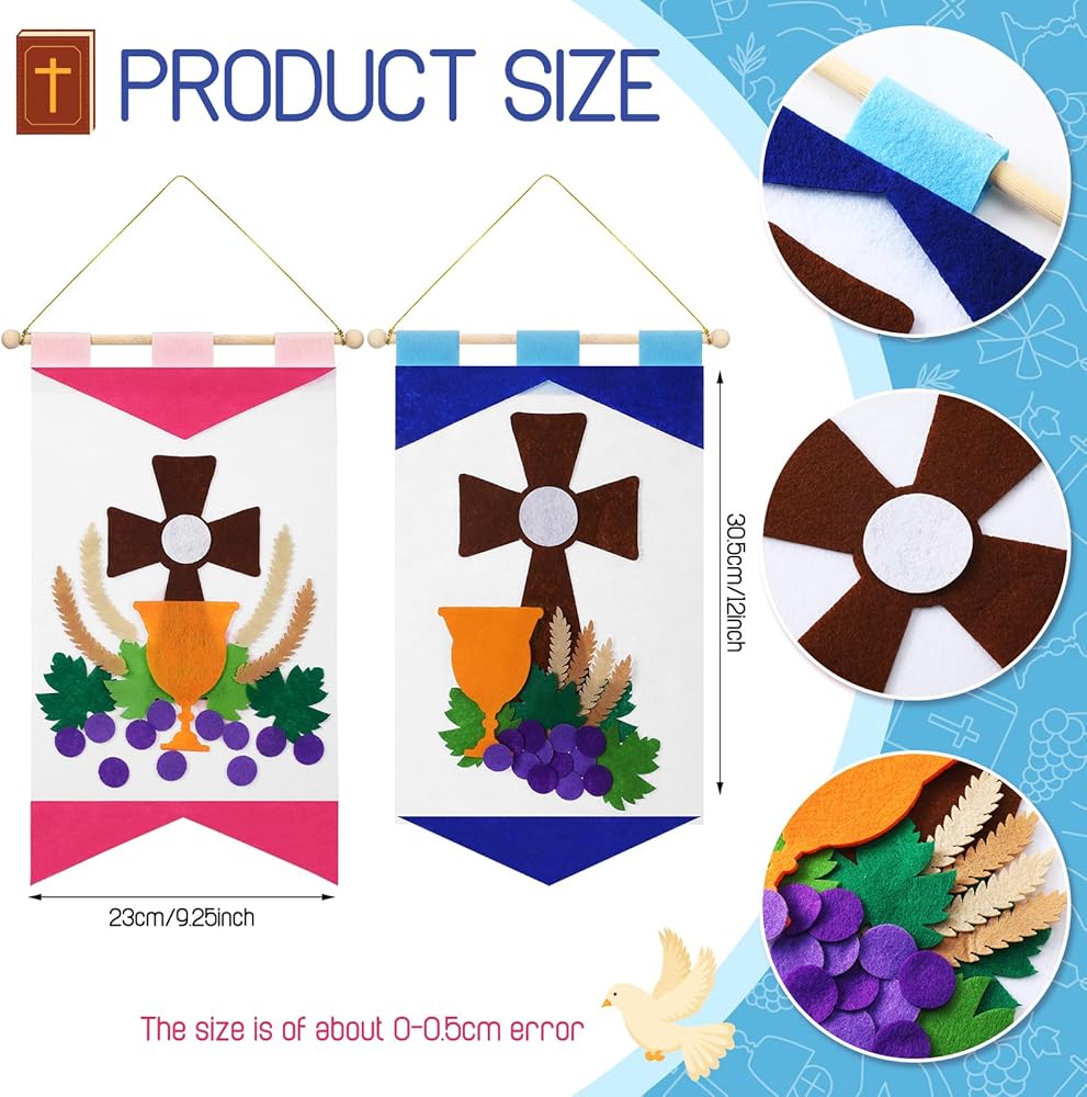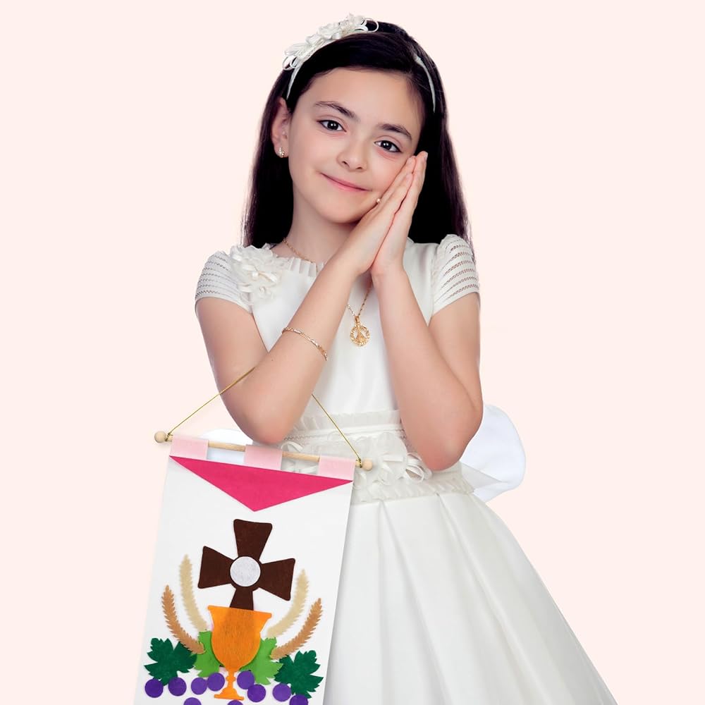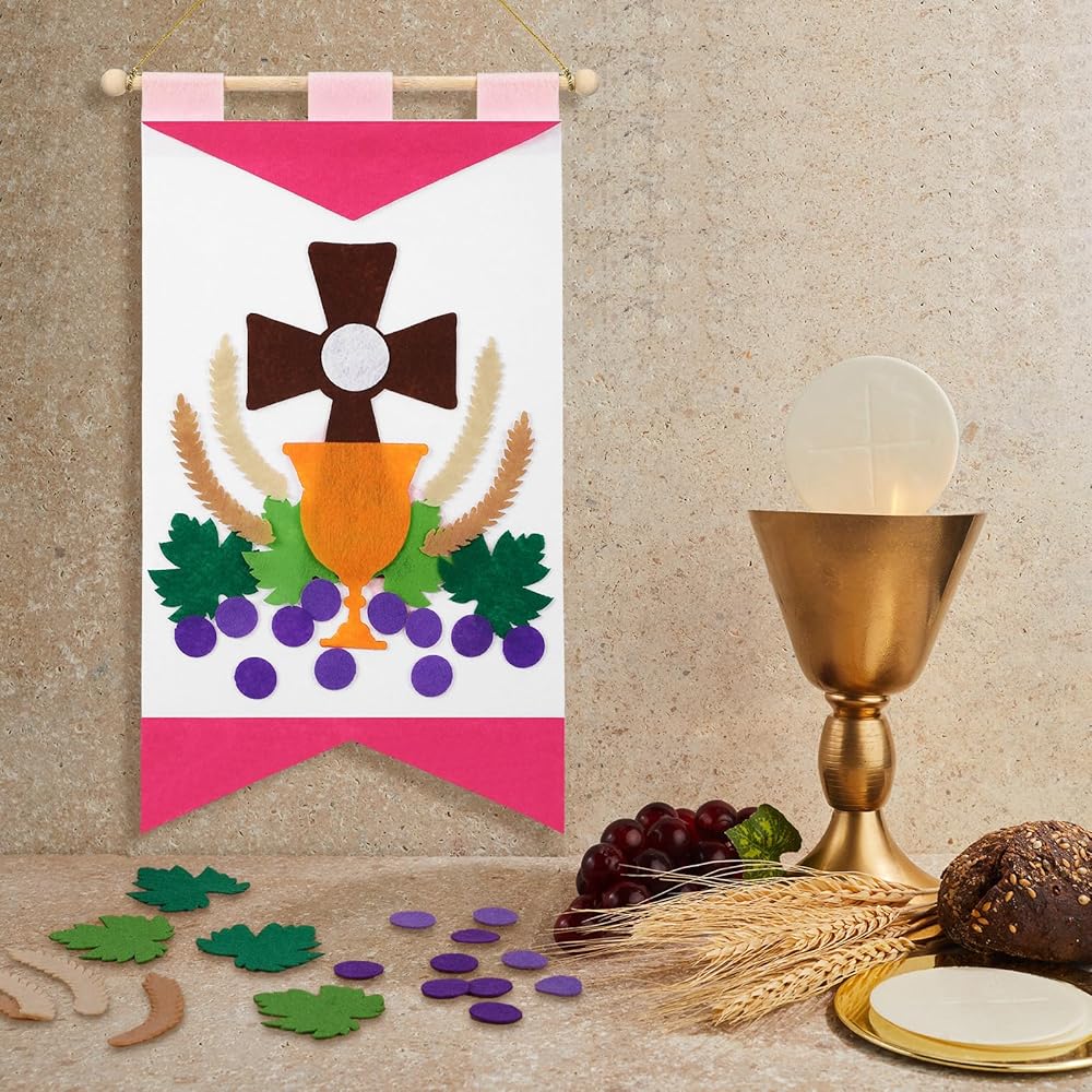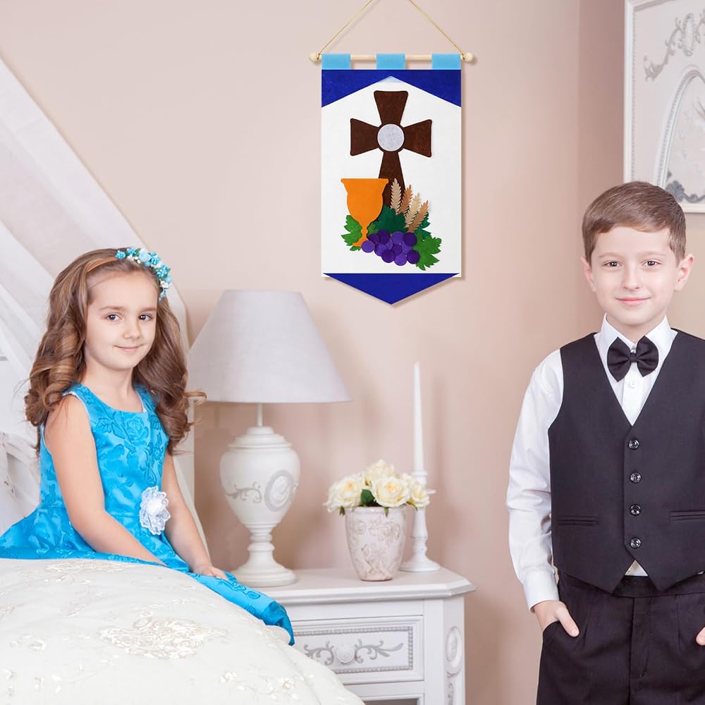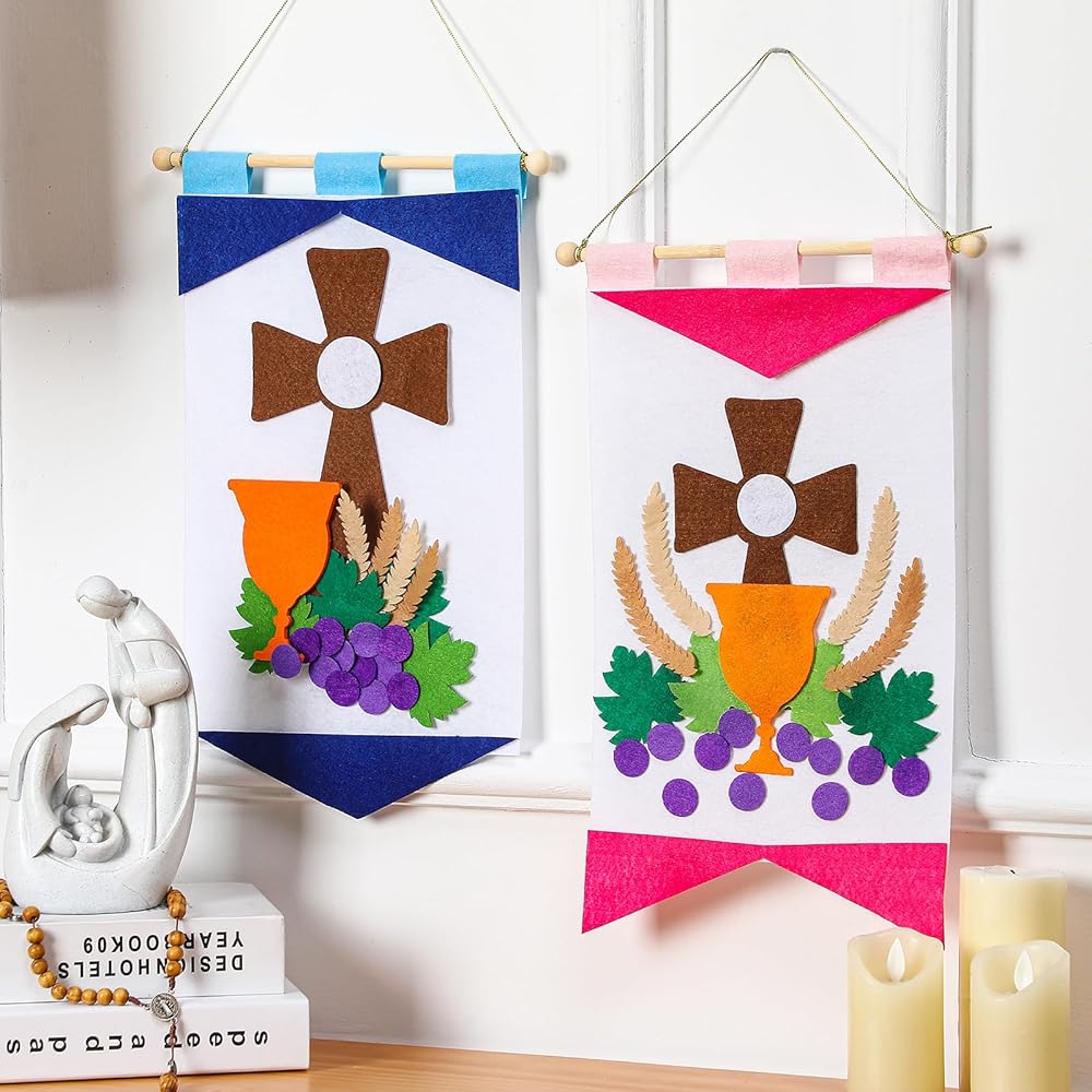 Not only are these holy first communion banner a good craft to celebrate first communion, but they are also the wonderful gift for friends and siblings who are preparing their own communion, our kits come in enough quantities for multiple boys and girls to get creative together banner production.
