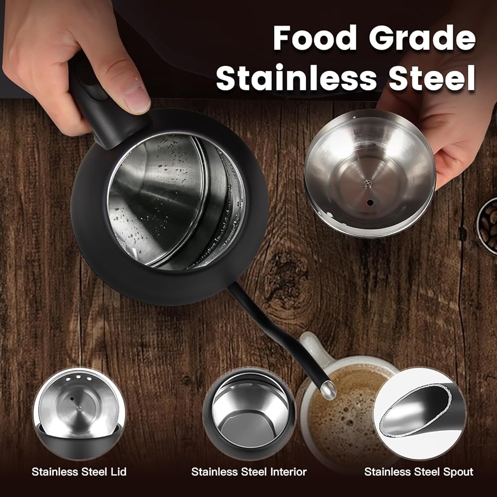 【الفولاذ المقاوم للصدأ الآمن غذائيًا】تم تصنيع غلاية كهربائية ذات رقبة معقوفة من الفولاذ المقاوم للصدأ عالي الجودة الآمن غذائيًا، مما يضمن سلامتك. ويشمل ذلك الجزء الداخلي والغطاء والصنبور، وجميعها مصنوعة من الفولاذ المقاوم للصدأ. يعمل الغطاء القابل للإزالة على تبسيط عملية التنظيف، بينما يضيف تصميم التقديم الخالي من الأسلاك الراحة لأي مناسبة. غلاية القهوة الكهربائية لدينا ليست آمنة فحسب، بل تم تصميمها أيضًا لتدوم طويلاً، مع هيكل قوي ومتين يضمن الخدمة على المدى الطويل.